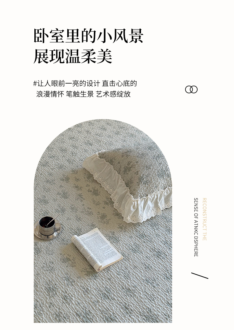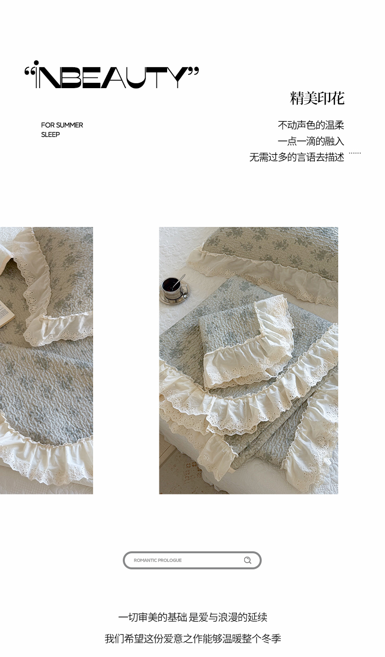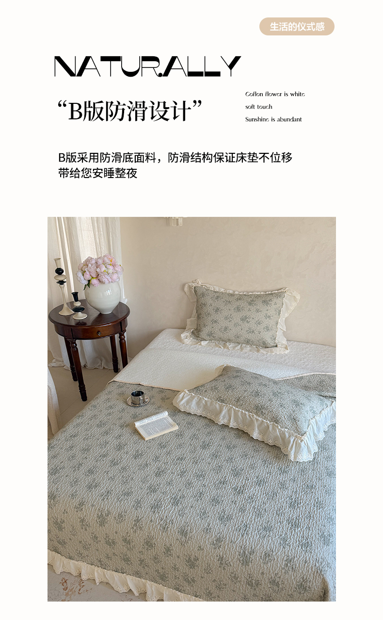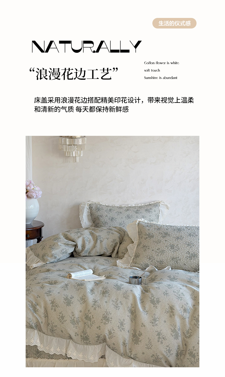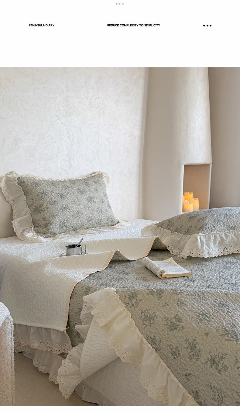 商品名称:琳可家居 2026新款印花全棉双层纱床盖棉布花边高温水洗A类标准夹棉可机洗 风雅花韵