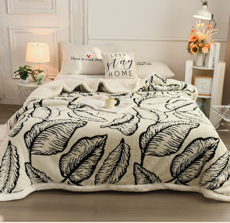 恋绒家纺 2025新款阳离子三层舒棉绒毛毯毯子 蕉叶白