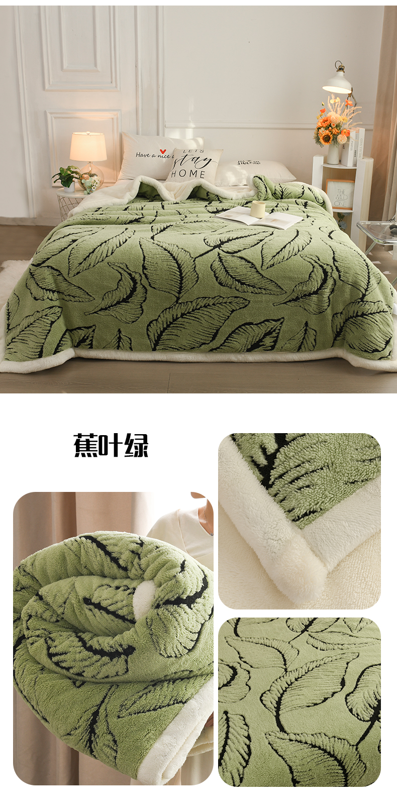 商品名称:恋绒家纺 2025新款阳离子三层舒棉绒毛毯毯子 蕉叶白