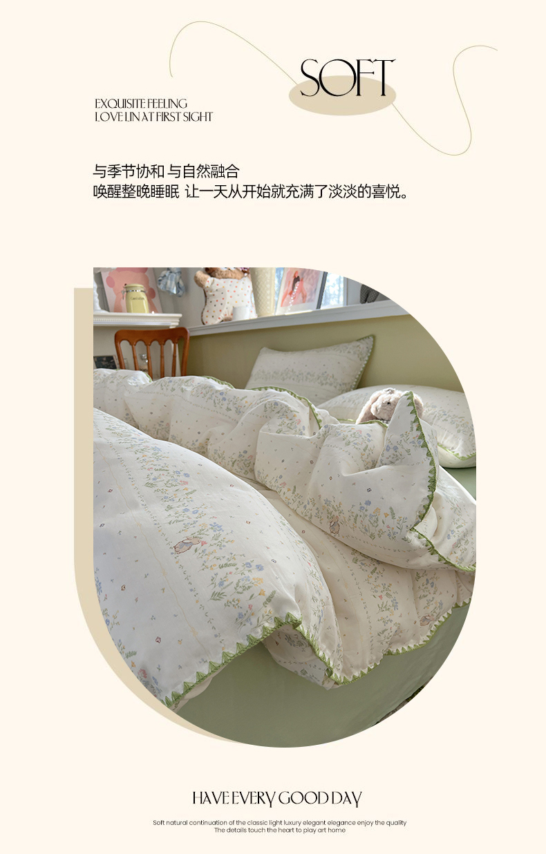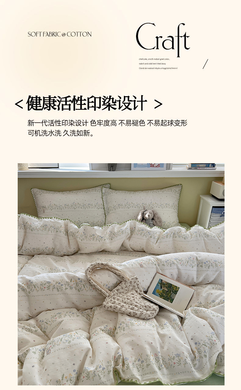 当前位置: 91家纺网 > 商品网购 > 床品套件 > 四件套 > 双层纱四件套 > 曼之夏 2026新款全棉纯棉有氧双层纱贝壳边四件套 贝壳边陌上花开