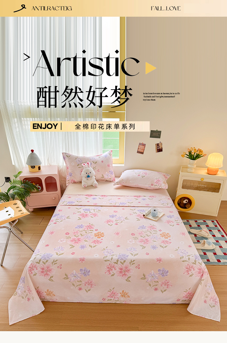 (总)尚帛 2026新款全棉时尚印花单床单,艾米丽-绿,宠爱,花间采趣-咖,可可甜心,可颂日记,浅影,如玉如兰,碎花学院,五星集,叶柔粉,叶之恋