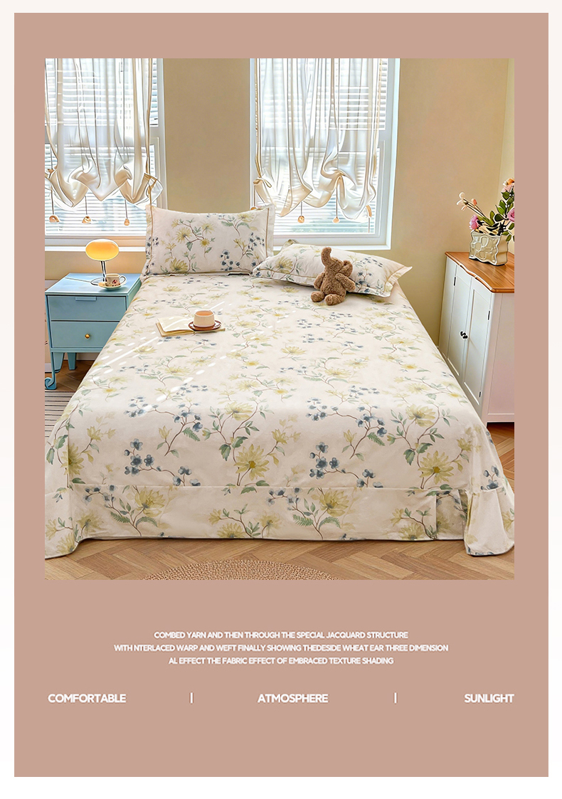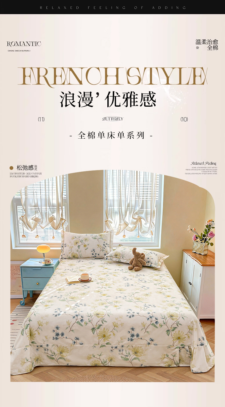 • 91家纺网 家纺一手货源 找家纺 名优家纺 2026新款60S13374高支密全棉印花纯色单床单 洛颜-蓝