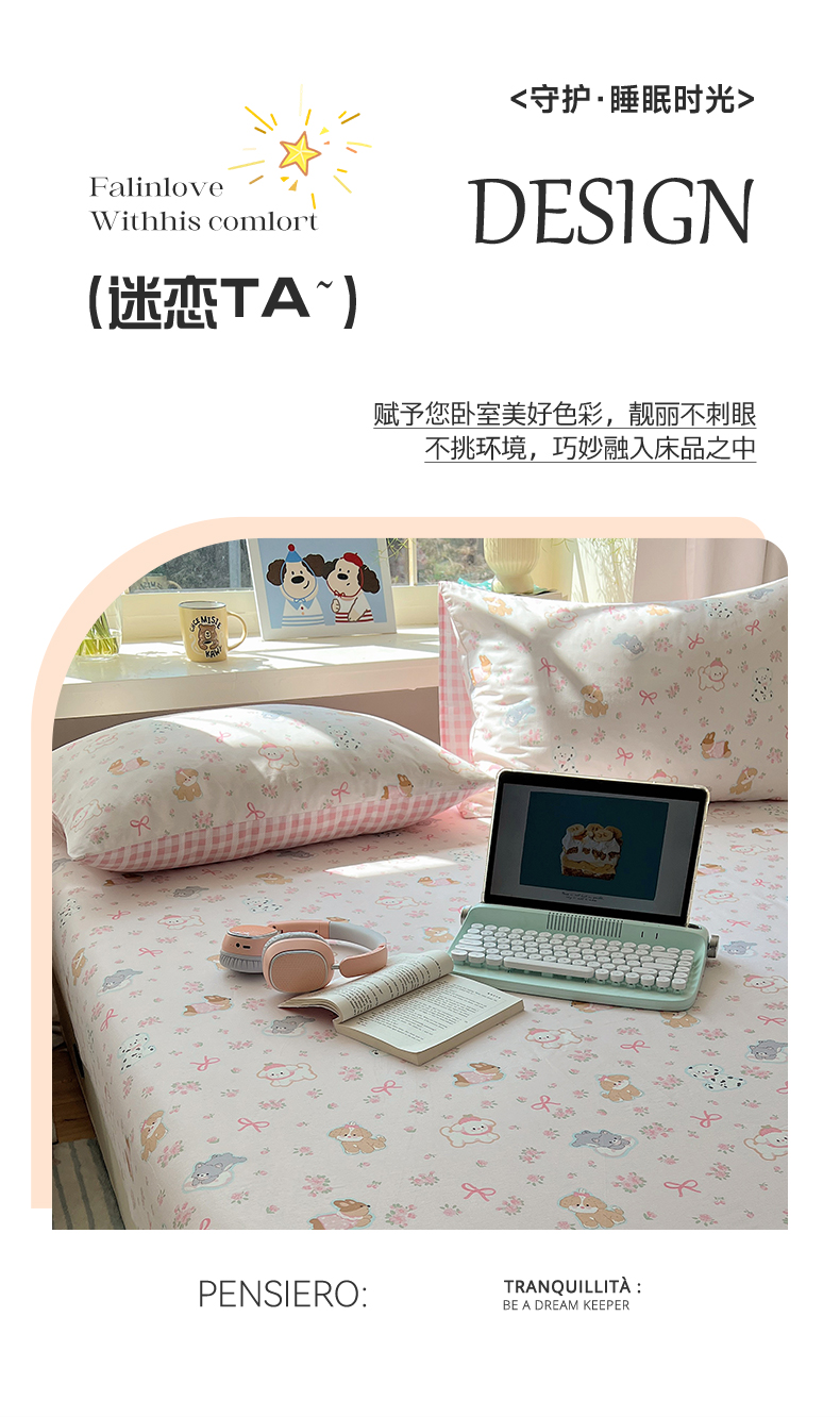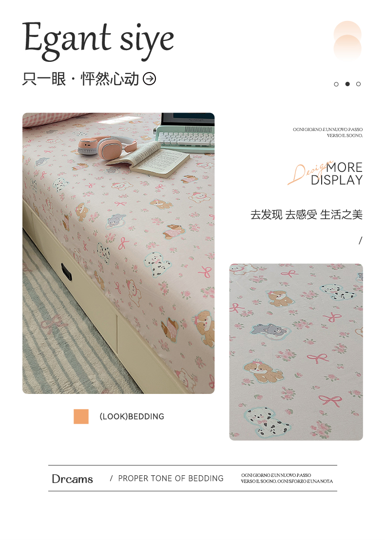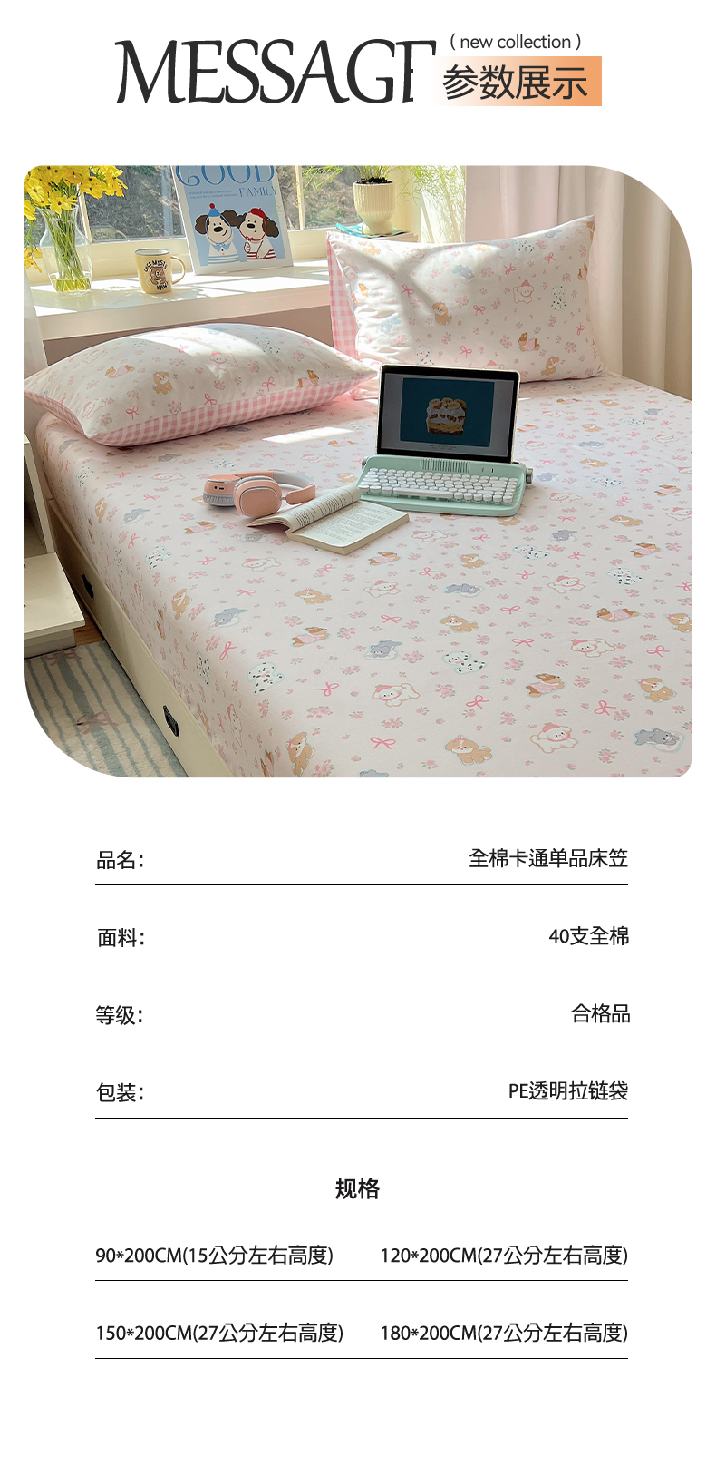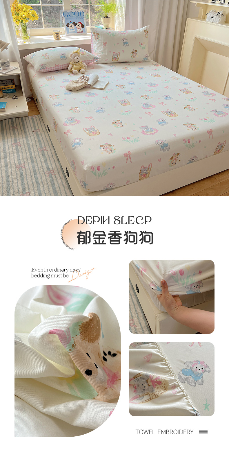 六巷胡同 2026新款40支全棉13070卡通单品床笠 浪漫碎花犬
