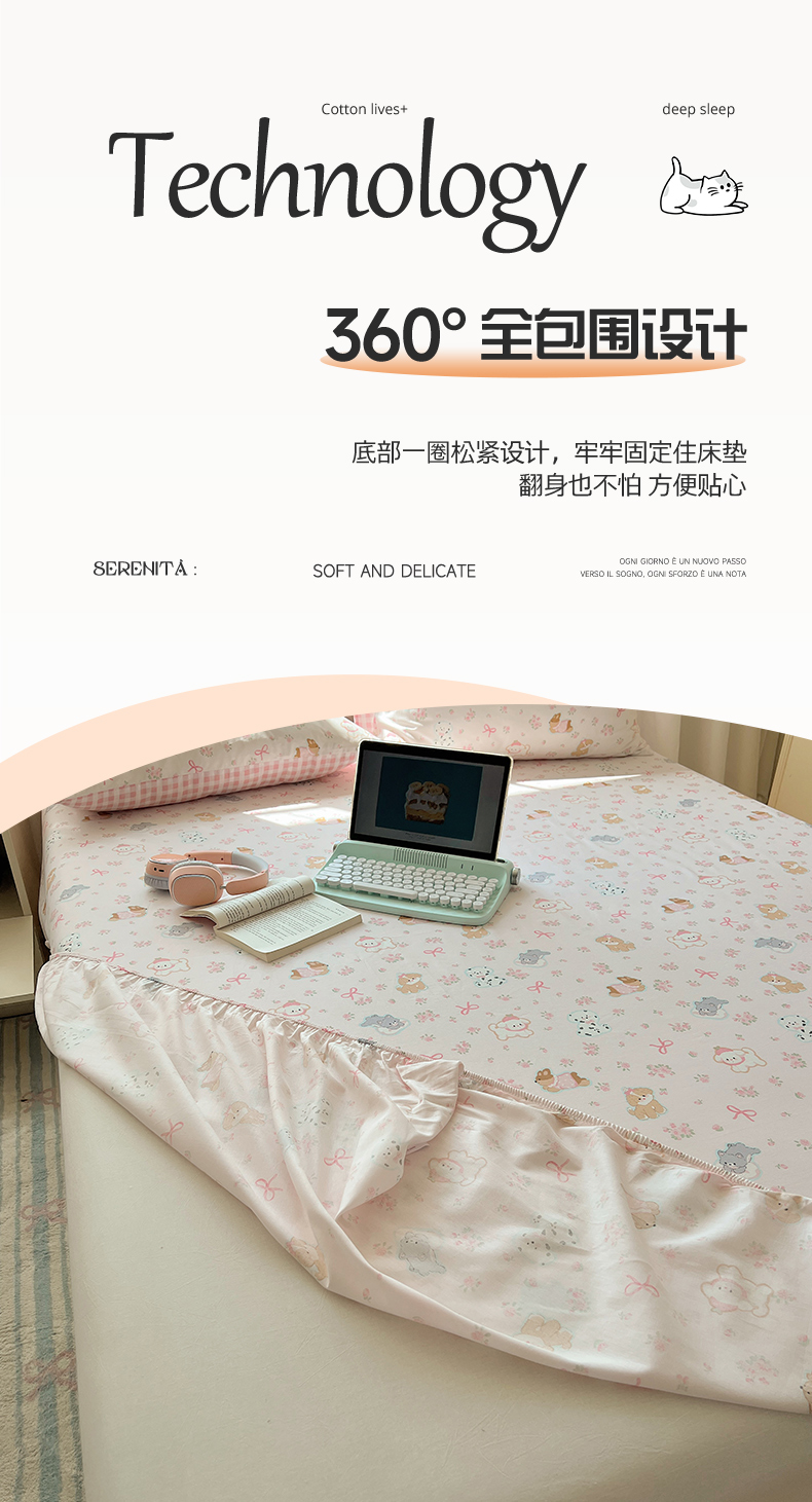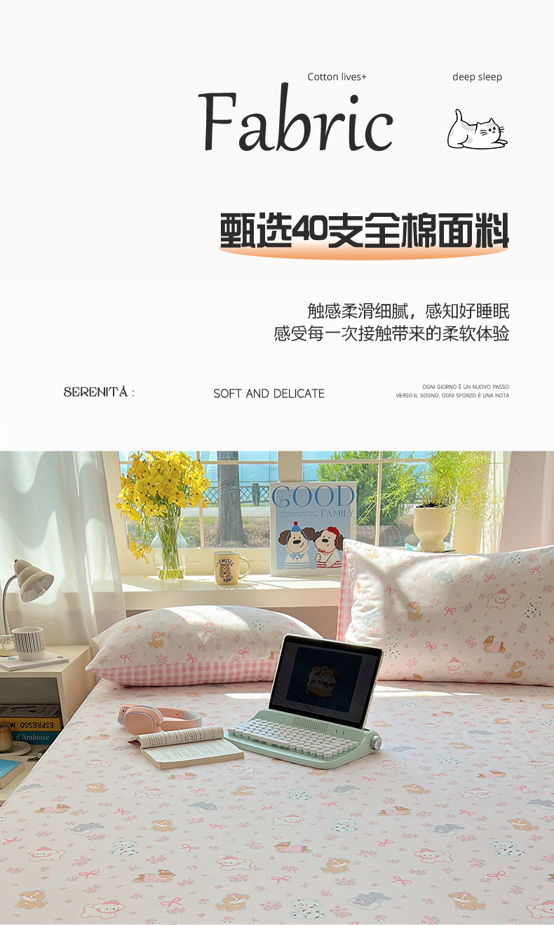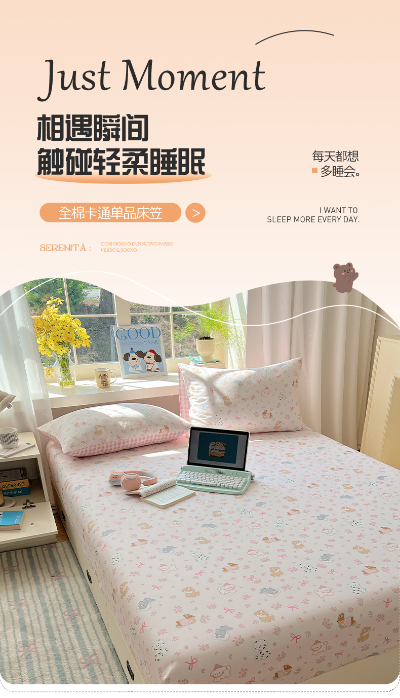 六巷胡同 2026新款40支全棉13070卡通单品床笠 浪漫碎花犬