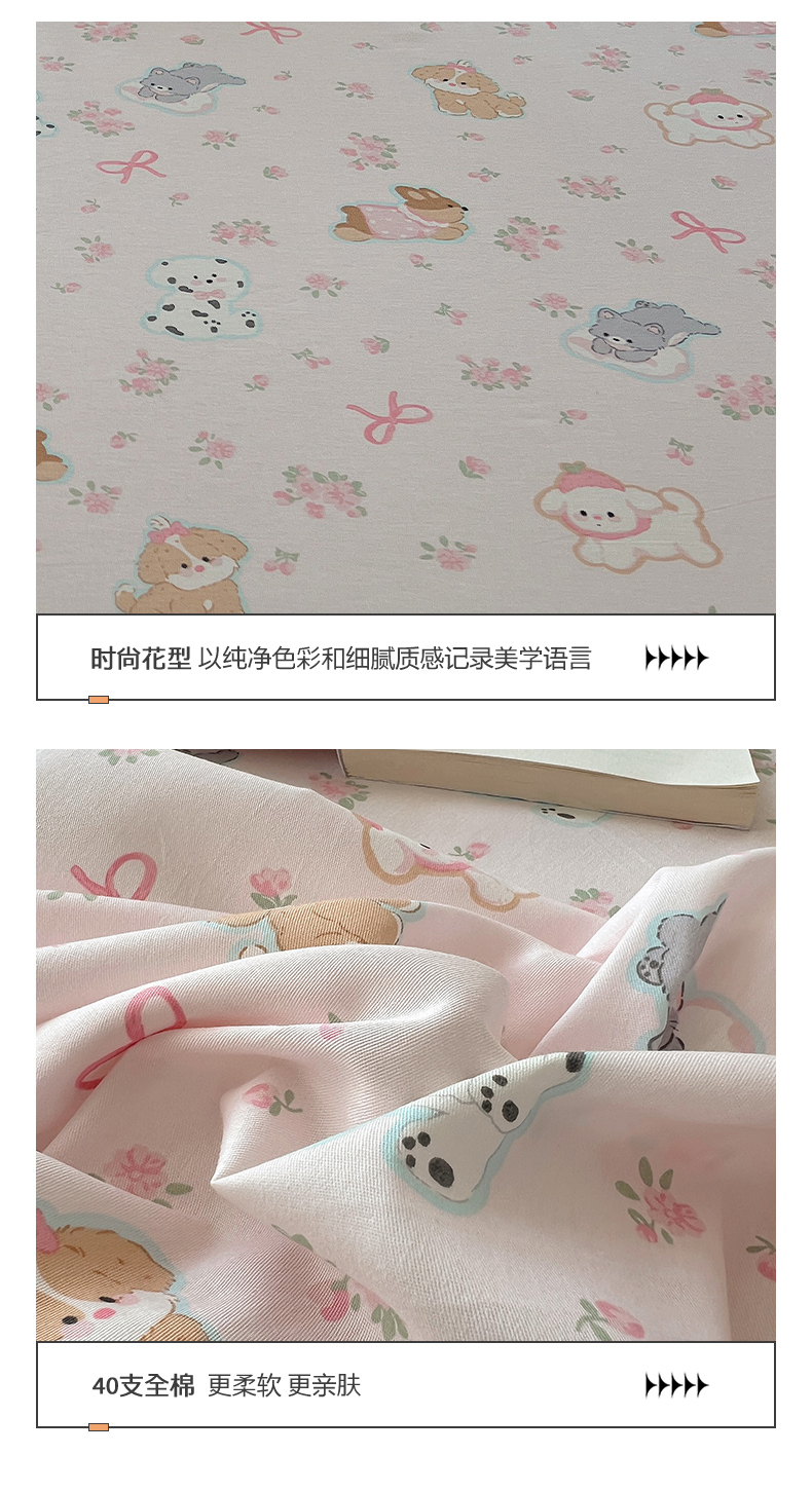 商品名称:六巷胡同 2026新款40支全棉13070卡通单品床笠 浪漫碎花犬
