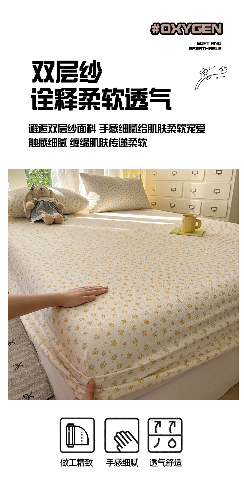 沐芷 2026 【提供买家秀】双层纱A类床笠单件/床笠三件套 床笠款床罩床垫保护套罩 橘子海