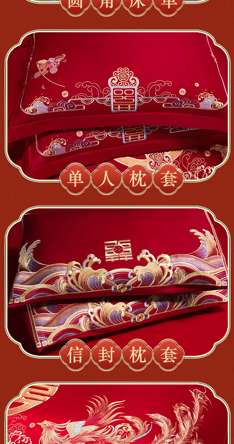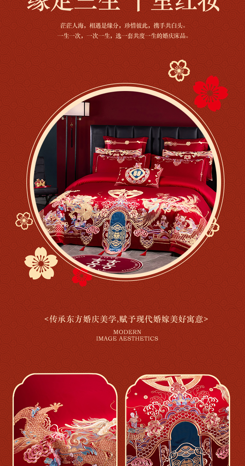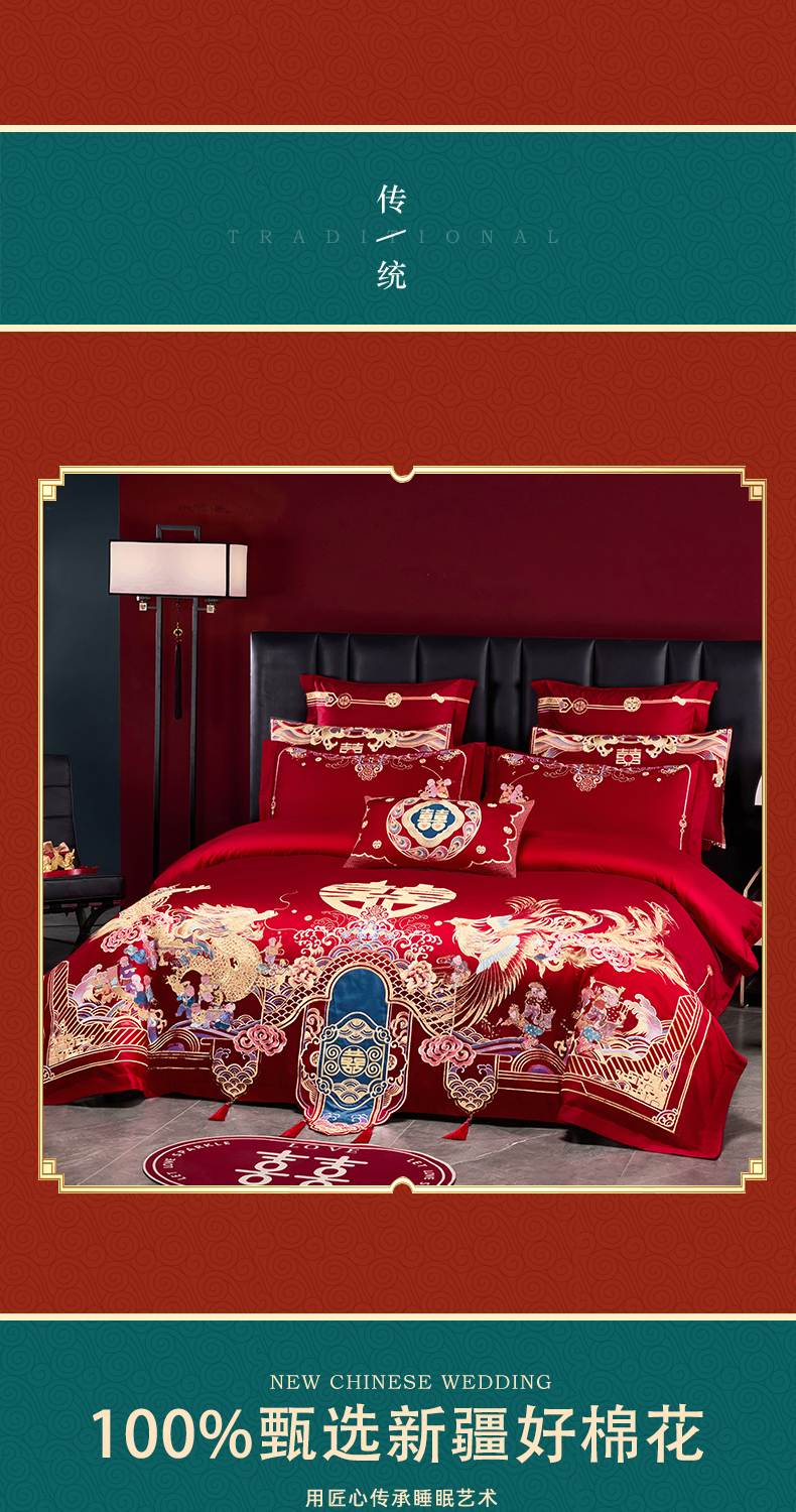 当前位置: 91家纺网 > 商品网购 > 床品套件 > 四件套 > 婚庆四件套 > 芊囍纺 2026新款双面长绒棉高端婚庆提花重工刺绣四件套多件套系列 龙凤百子