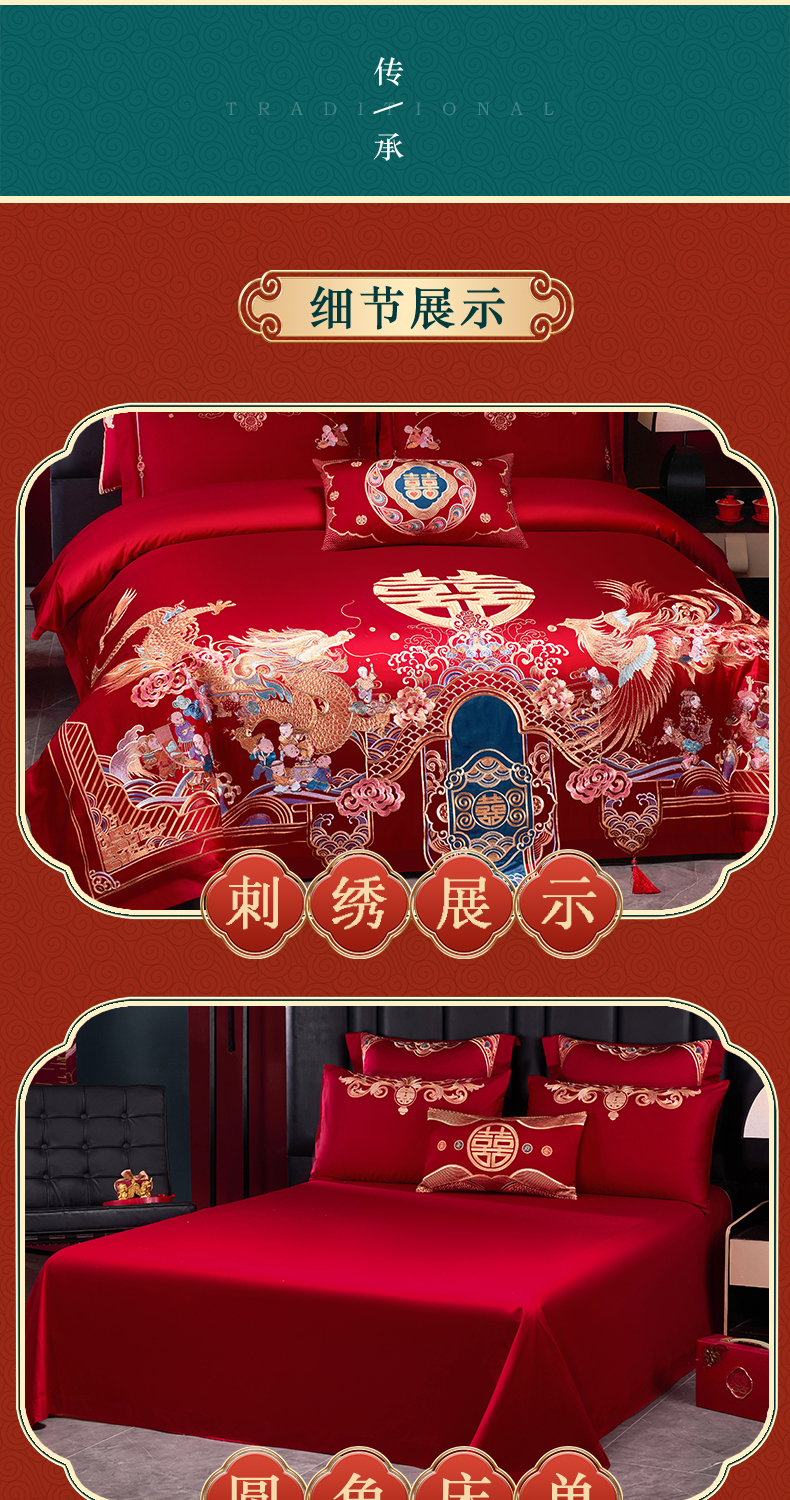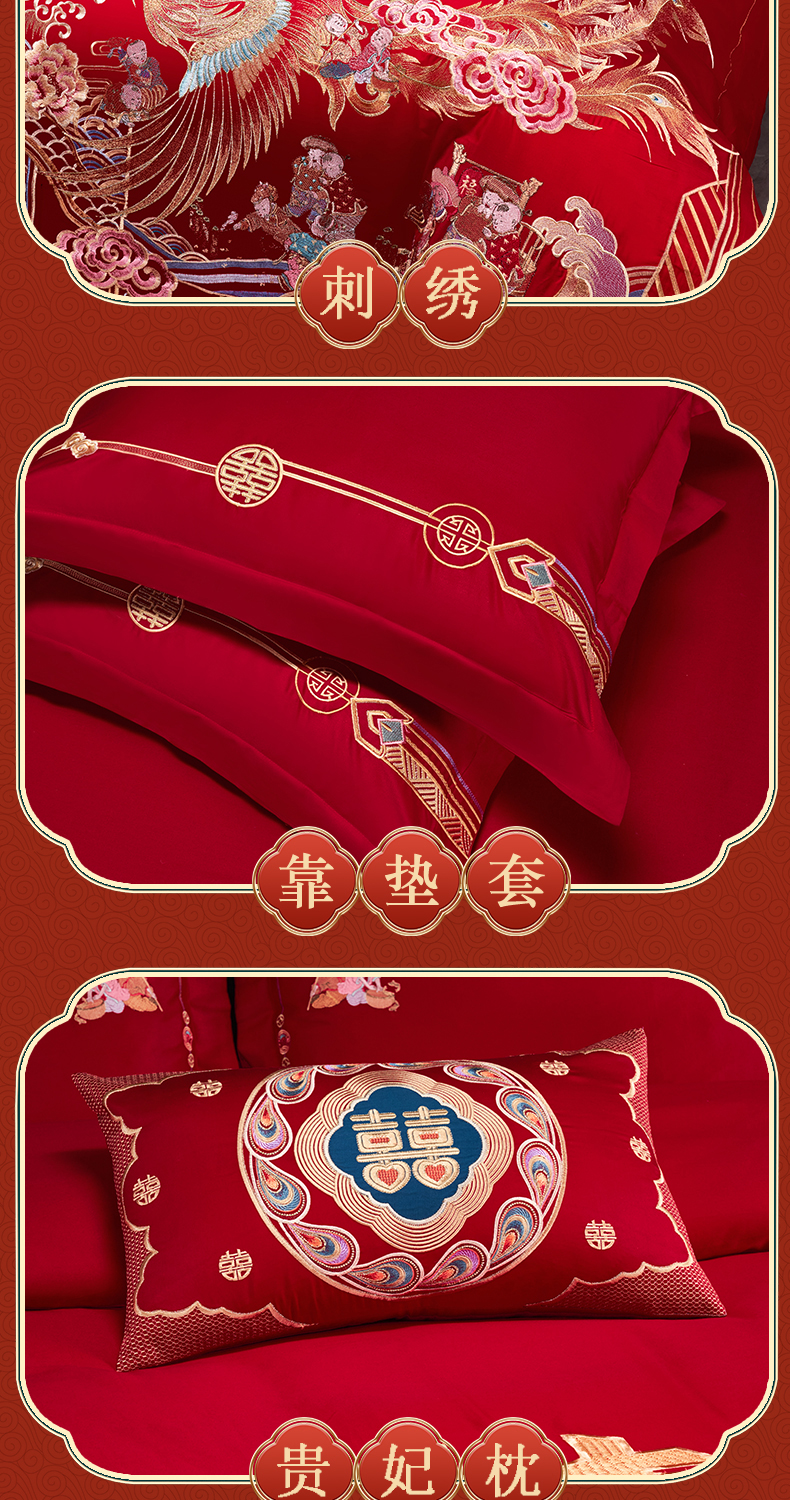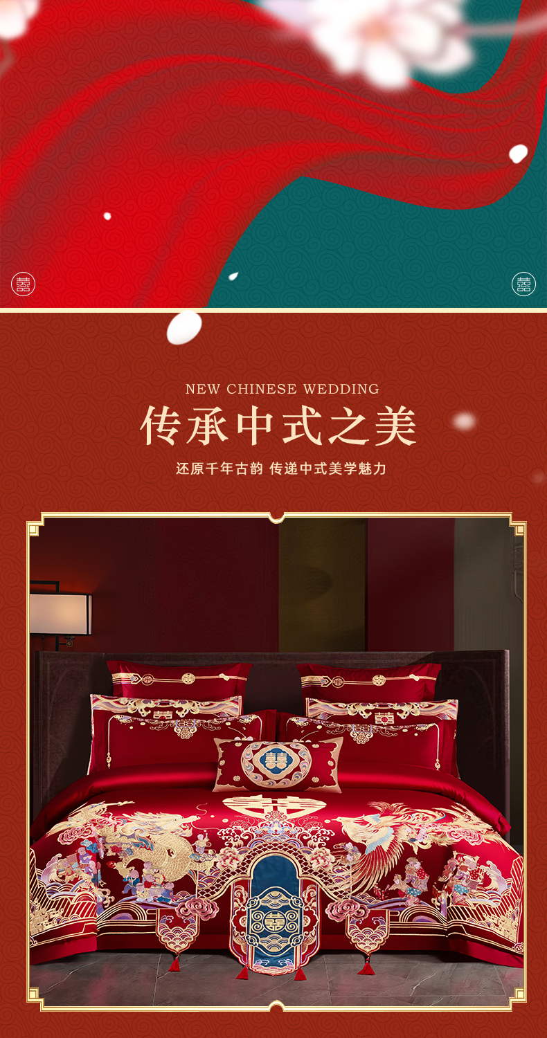 当前位置: 91家纺网 > 商品网购 > 床品套件 > 四件套 > 婚庆四件套 > 芊囍纺 2026新款双面长绒棉高端婚庆提花重工刺绣四件套多件套系列 龙凤百子