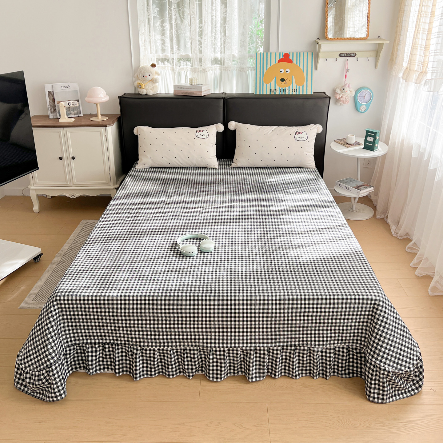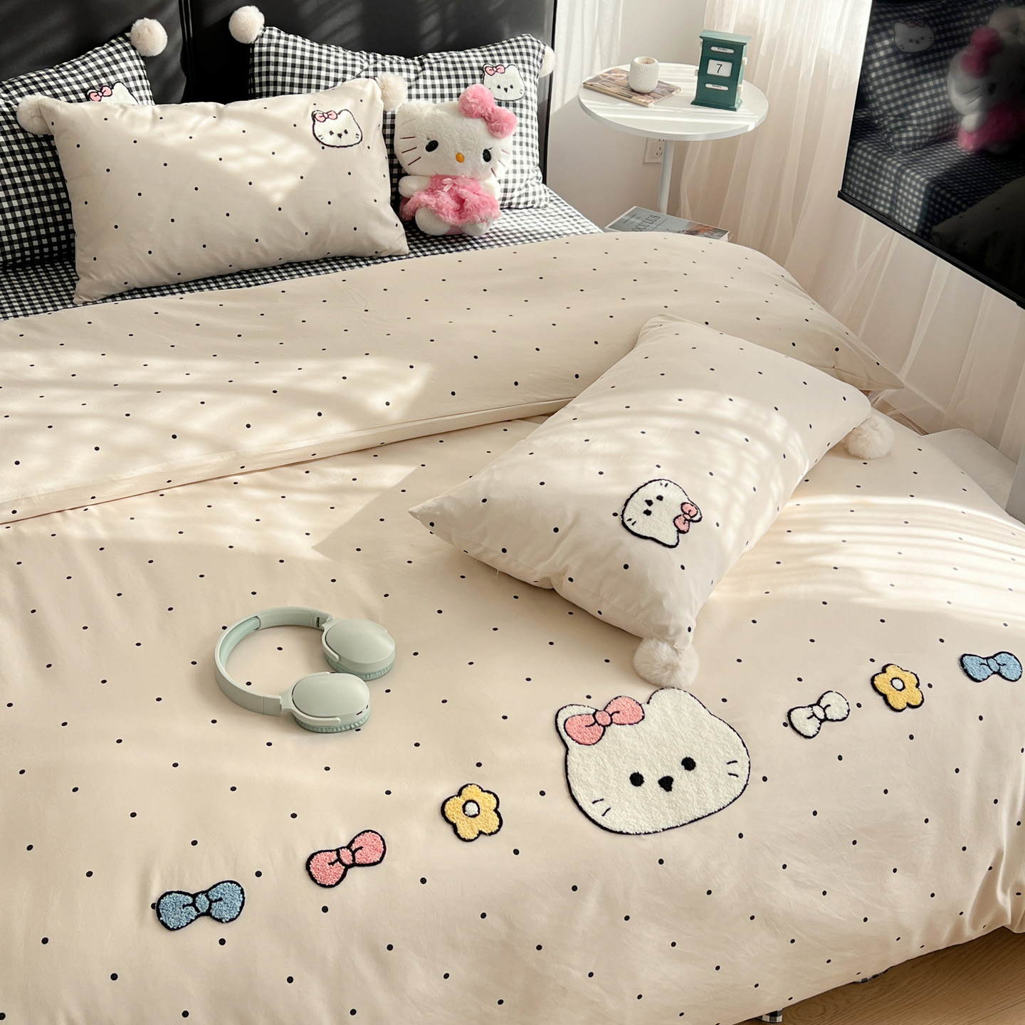 当前位置: 91家纺网 > 商品网购 > 床品套件 > 三件套 > 富米莱单品馆 2026新款水洗棉波点毛巾绣黑格球球款单品 幸福猫咪-米
