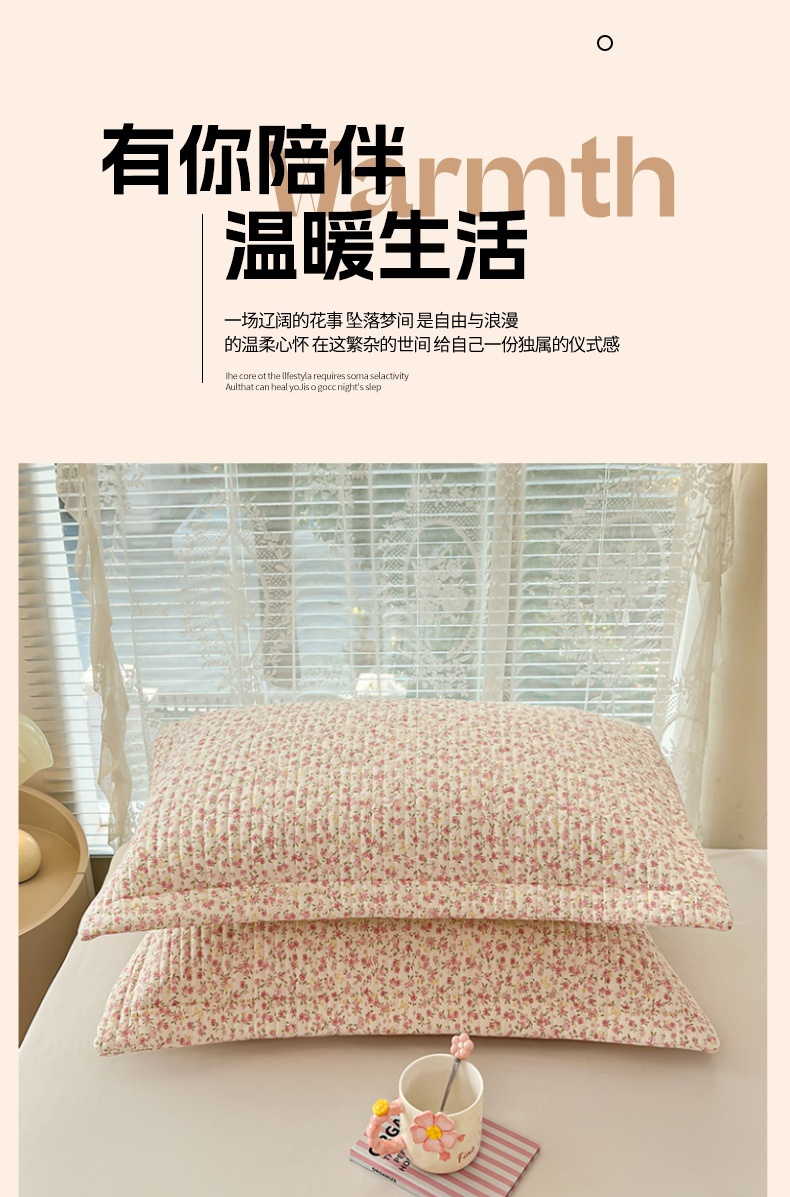 圣比熊 2025新款A类云朵棉夹棉枕套宿舍单人一只装枕芯内胆套-单人枕套 芊芊花海(压线夹棉)