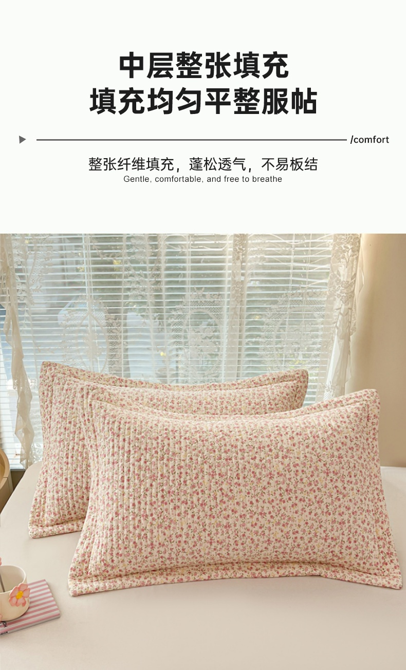 • 91家纺网 家纺一手货源 找家纺 圣比熊 2025新款A类云朵棉夹棉枕套宿舍单人一只装枕芯内胆套-单人枕套 芊芊花海(压线夹棉)