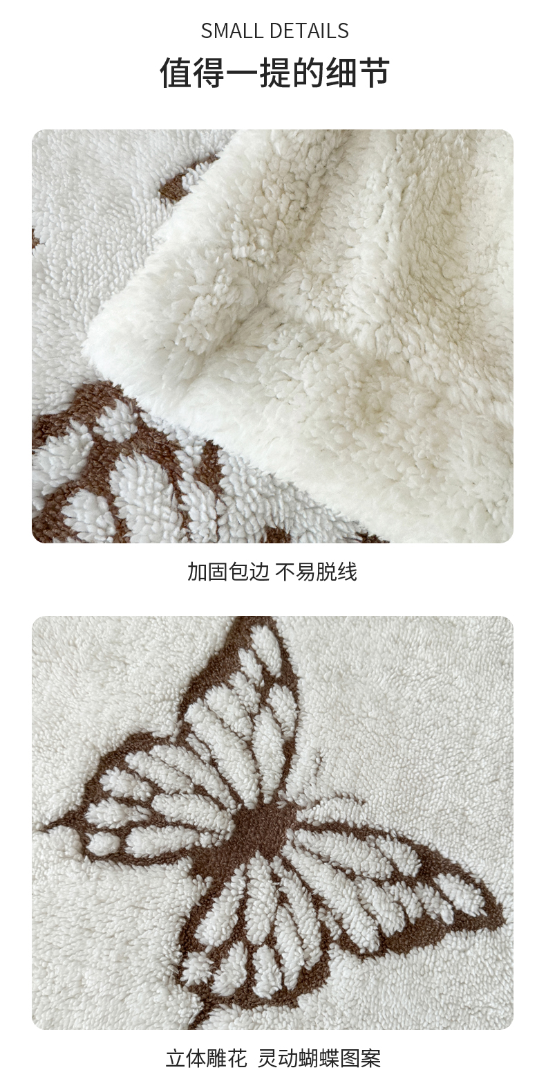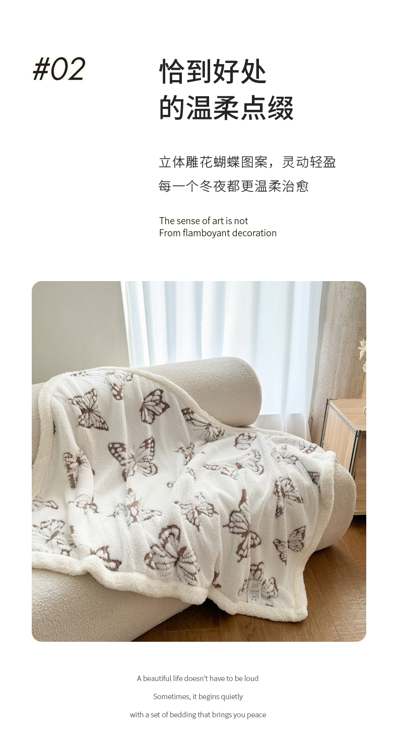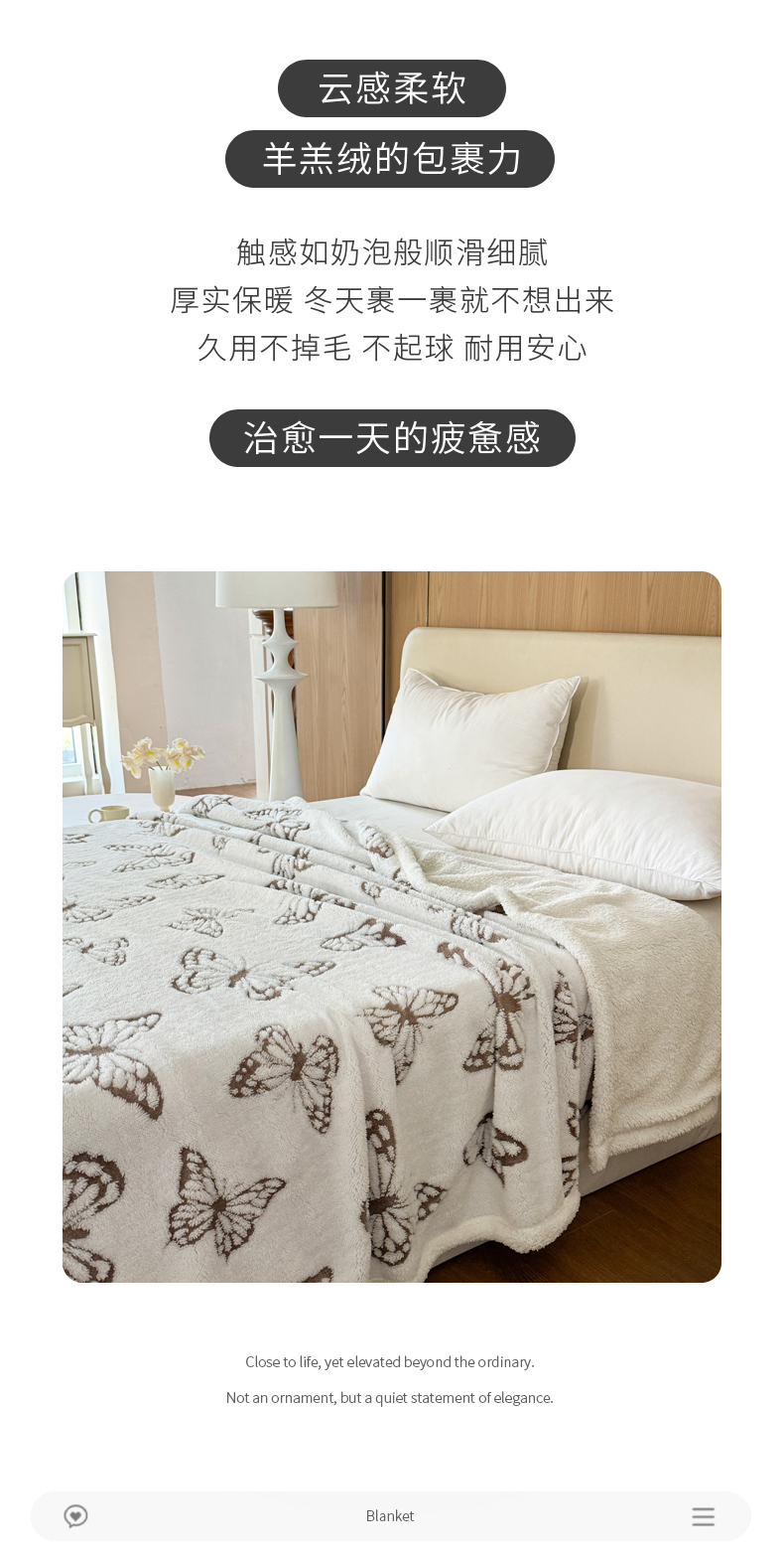 商品名称:丹本家纺 2026新款双层阳离子提花蝴蝶色织多功能盖毯塔芙绒羊羔绒毛毯毯 组合图仅展示