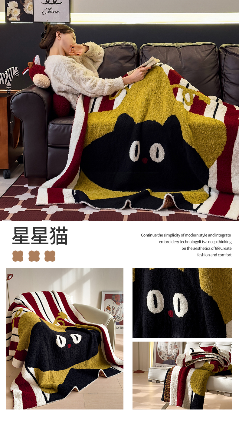 商品名称:兄弟坊 2026新款A类大阪半边绒糯叽叽毛毯 盖毯 午睡毯 夏被毯 披肩毯 糯叽叽半边绒-星星猫
