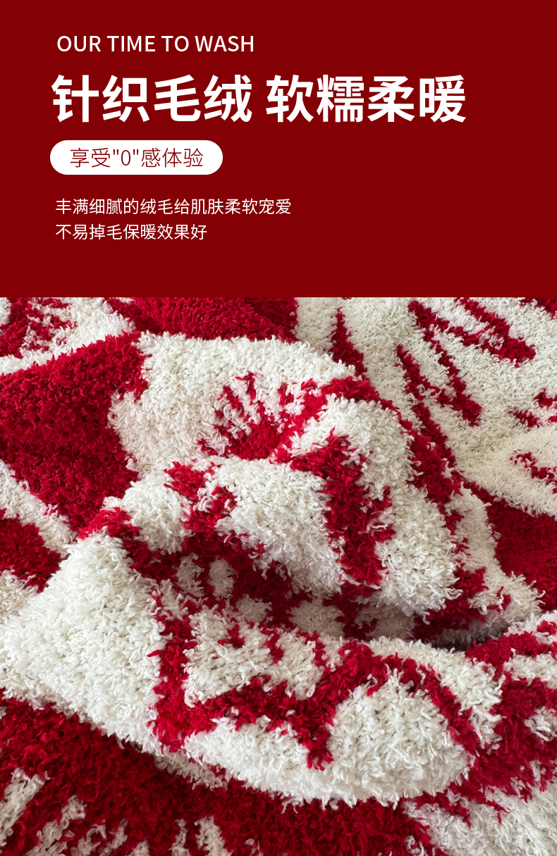 (总)丹本家纺 2025新款红双囍玫瑰花花束毯子结婚订婚毛毯披肩盖毯,花朵毯红双喜字