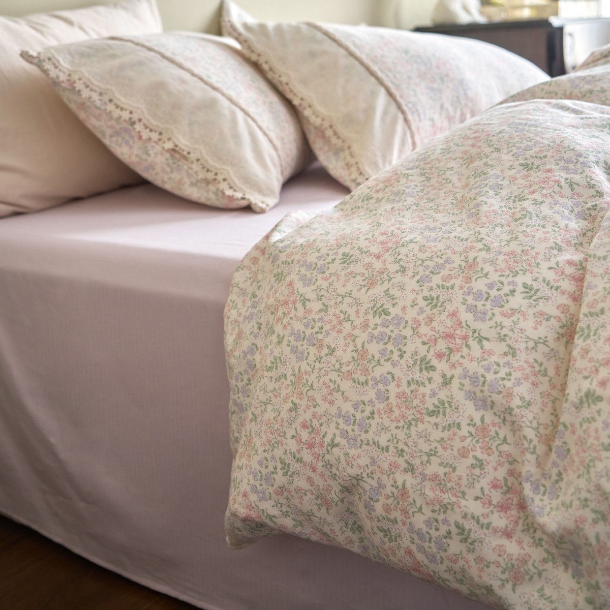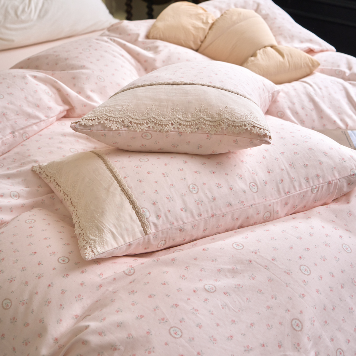 当前位置: 91家纺网 > 商品网购 > 床品套件 > 四件套 > 全棉普通四件套 > 洋铭区(原狠狠爱) 2026新款全棉纯棉双层纱刺绣蕾丝花边件套 蓓蕾兰花