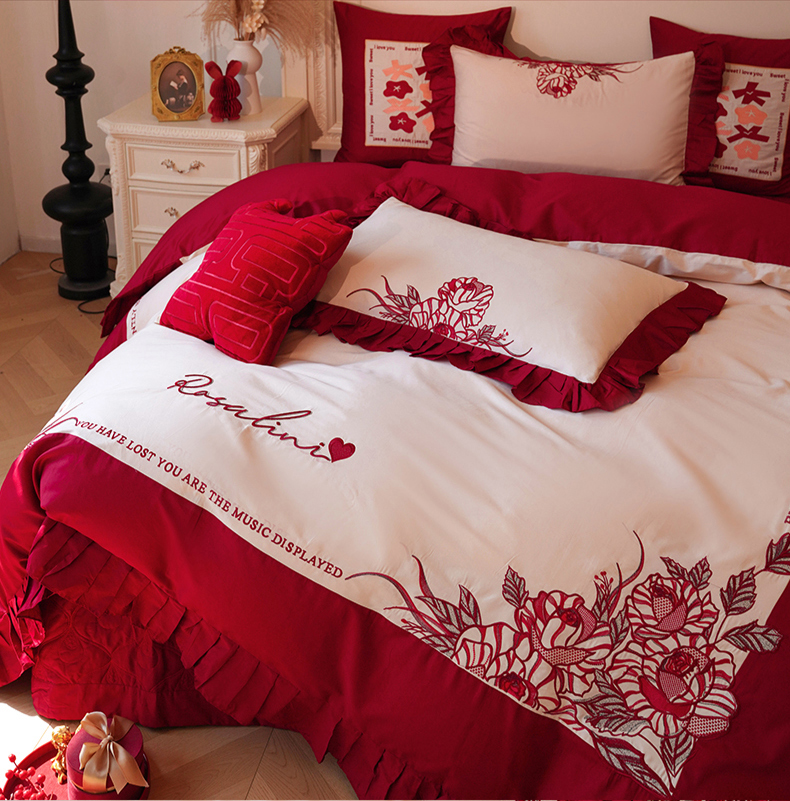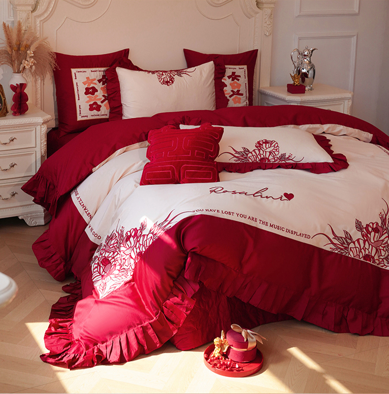 当前位置: 91家纺网 > 商品网购 > 床品套件 > 四件套 > 长绒棉四件套 > 甜咪咪婚庆 2026新品婚庆50s长绒棉全棉纯棉床单床盖款结婚四件套多件套 春和景明