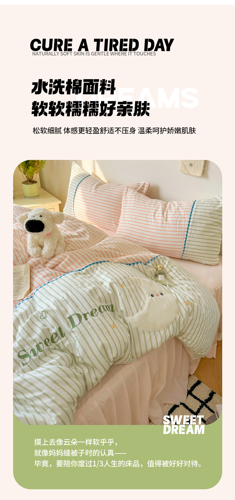 贝凯瑞 2026款仿棉木棉水洗棉绣花ins小清新床裙床单款四件套-星月语 星月语-奶油晴川,星月语-奶油晴川