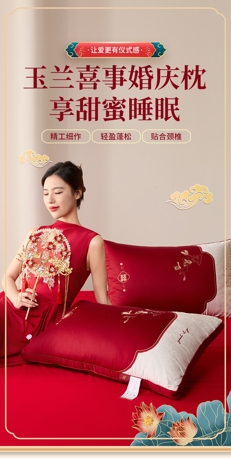 当前位置: 91家纺网 > 商品网购 > 枕头/枕芯/保健枕/颈椎枕 > 枕头枕芯 > 昕科 2026新款玉兰喜事婚庆枕-大红婚庆喜庆枕芯刺绣结婚枕头 玉兰喜事-中枕/一只装