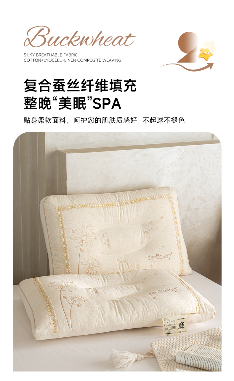 (总)昕科 2026新款亚麻蒲公英枕-棉麻枕芯刺绣亚麻枕头,亚麻蒲公英枕/一只装,亚麻蒲公英枕/一对装