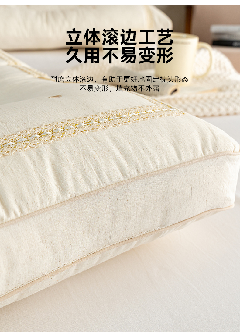 (总)昕科 2025新款蕾丝花边棉麻定型低枕枕头枕芯,蕾丝花边棉麻定型低枕