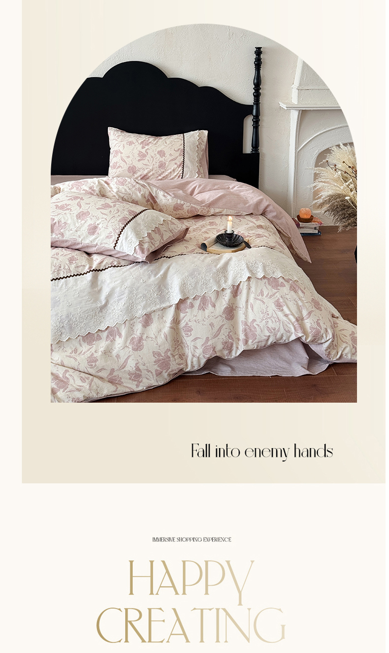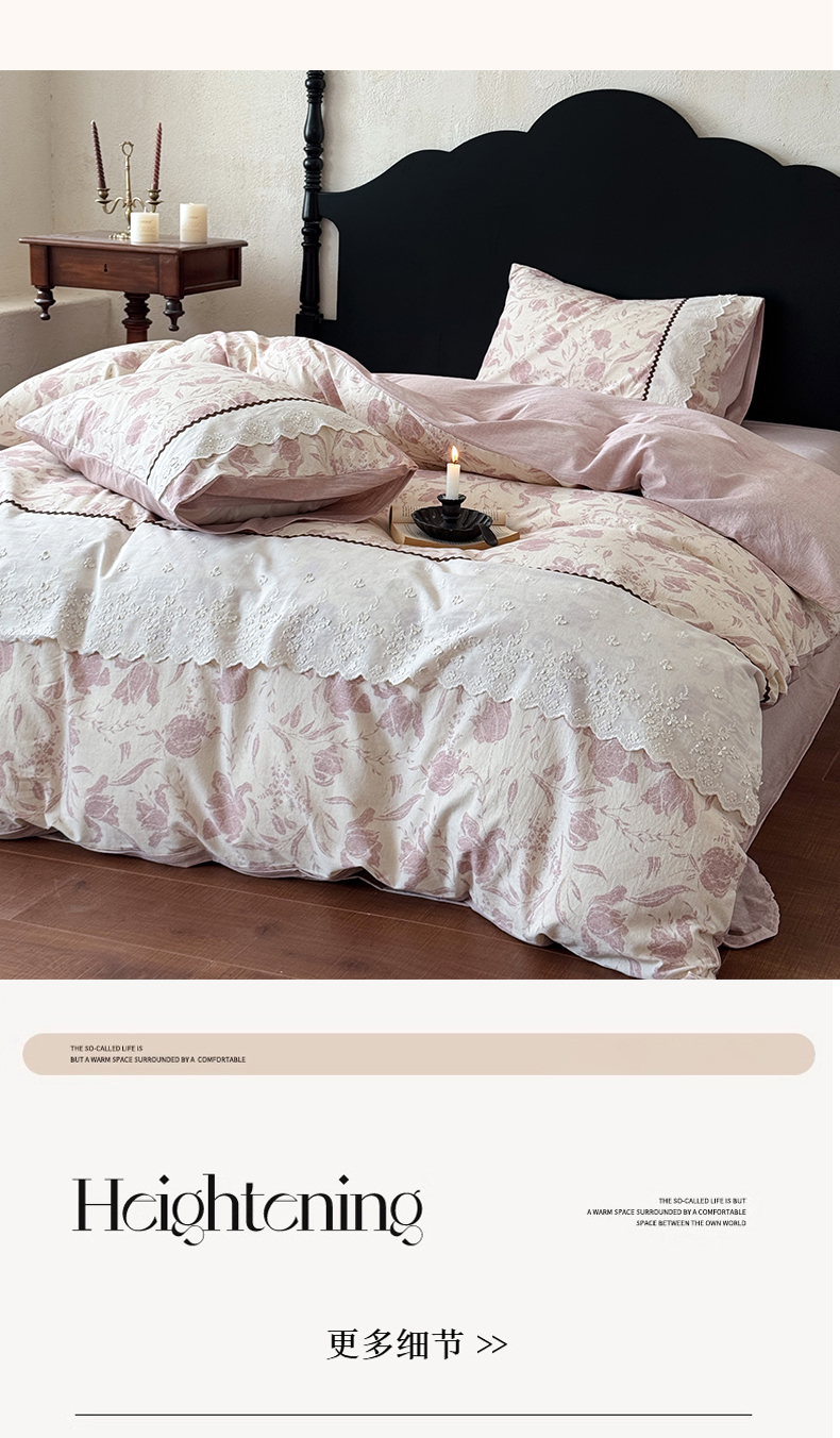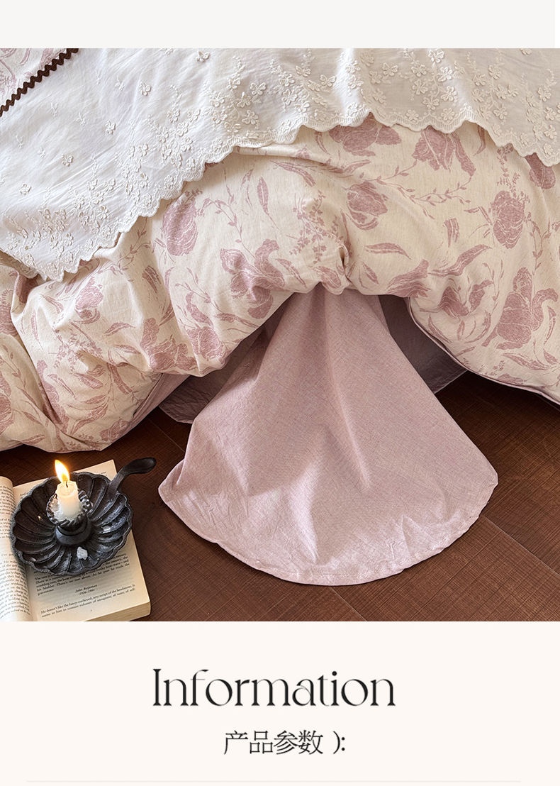 (总)淑女公社家纺 2026新款法式立体蝴蝶花边棉麻四件套,花香满园 绿,秋棠 红,时雨 咖,晚枝 红