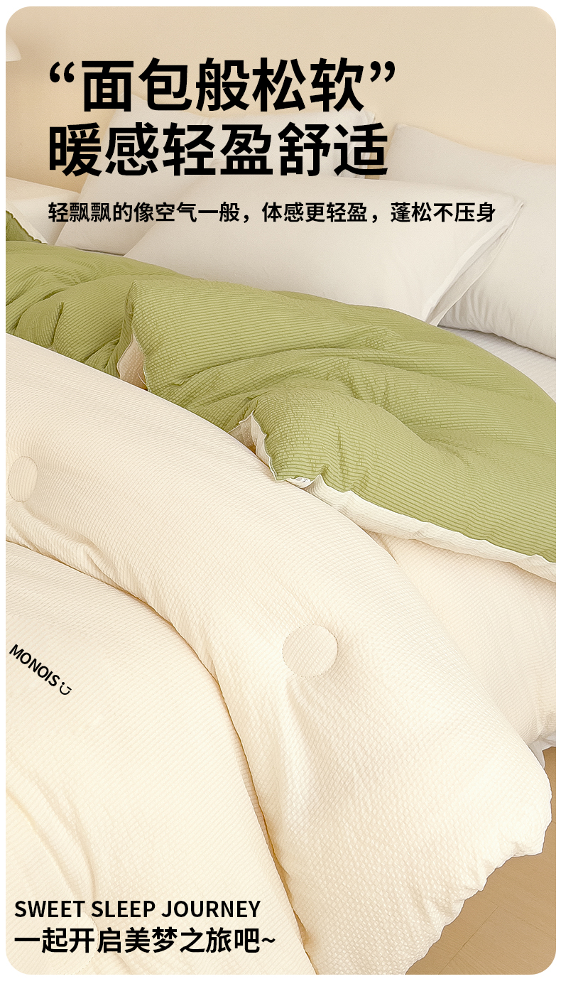 • 91家纺网 家纺一手货源 找家纺 (总)好尚居 2026新款纯色亲肤皱皱纱大豆纤维被被子被芯,本白,浅灰,浅绿,玉色