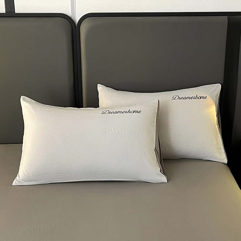 商品名称:鑫利来家纺 2026新款古法仿棉水洗云朵棉刺绣单枕套纯色双拼水洗磨毛简约字母刺绣枕套 慕斯-山灰+中灰