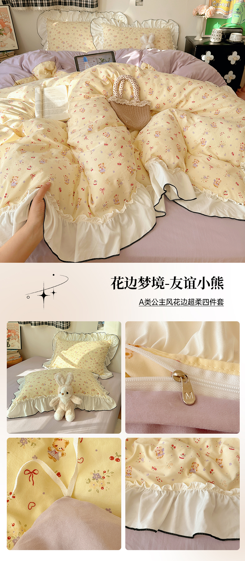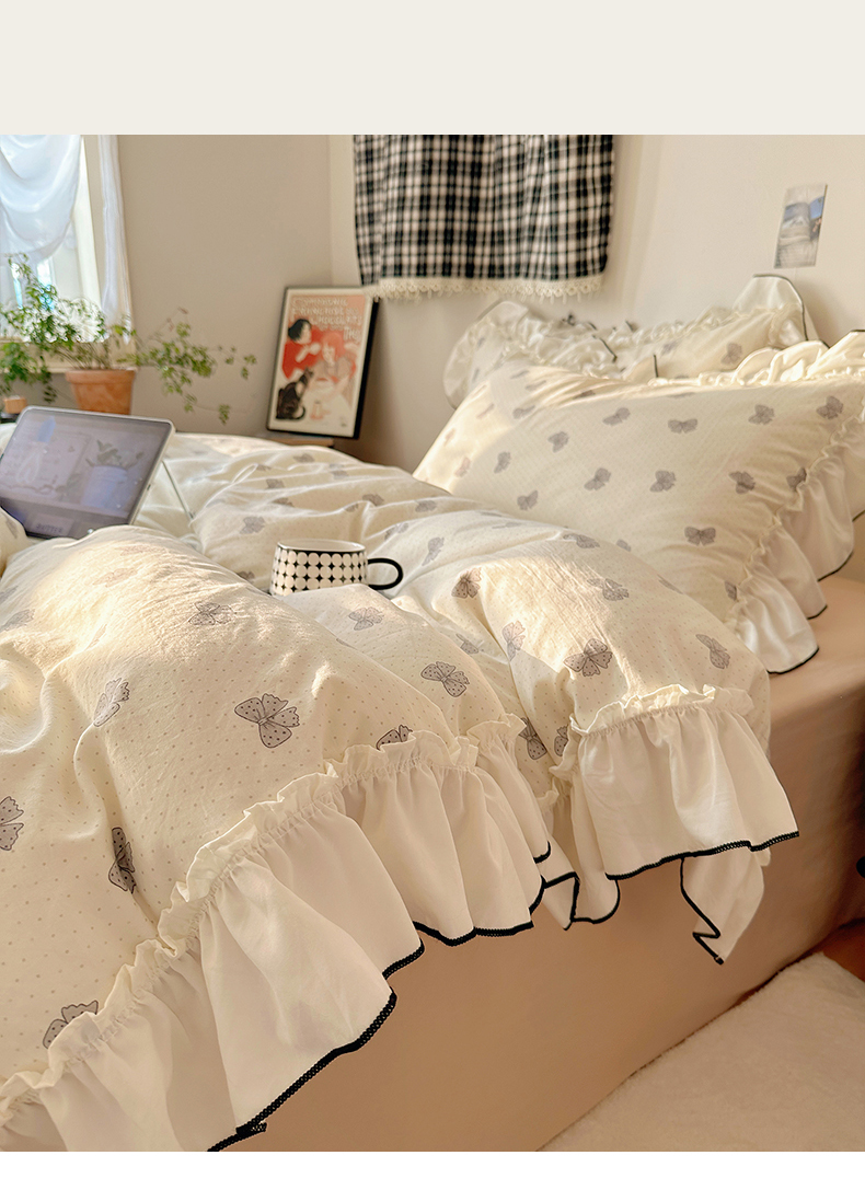 当前位置: 91家纺网 > 商品网购 > 床品套件 > 四件套 > 水洗棉四件套 > 沐芷 2026 【提供买家秀】公主风法式花边四件套A类古法水洗仿棉床上用品被套 花边梦境-波点蝴蝶结