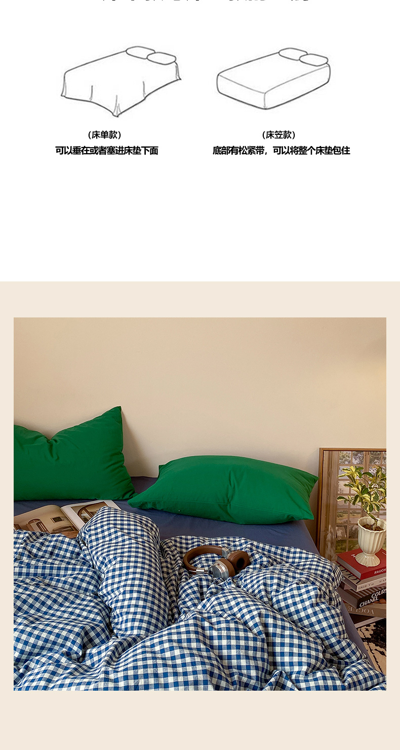 (总)对白 2026新款ins风全棉色织水洗棉纯棉简约极简格子系列四件套-草莓奶昔【提供买家秀】,草莓奶昔(枕套格子+小花),草莓奶昔(枕套小花),草莓奶昔(枕套格子)