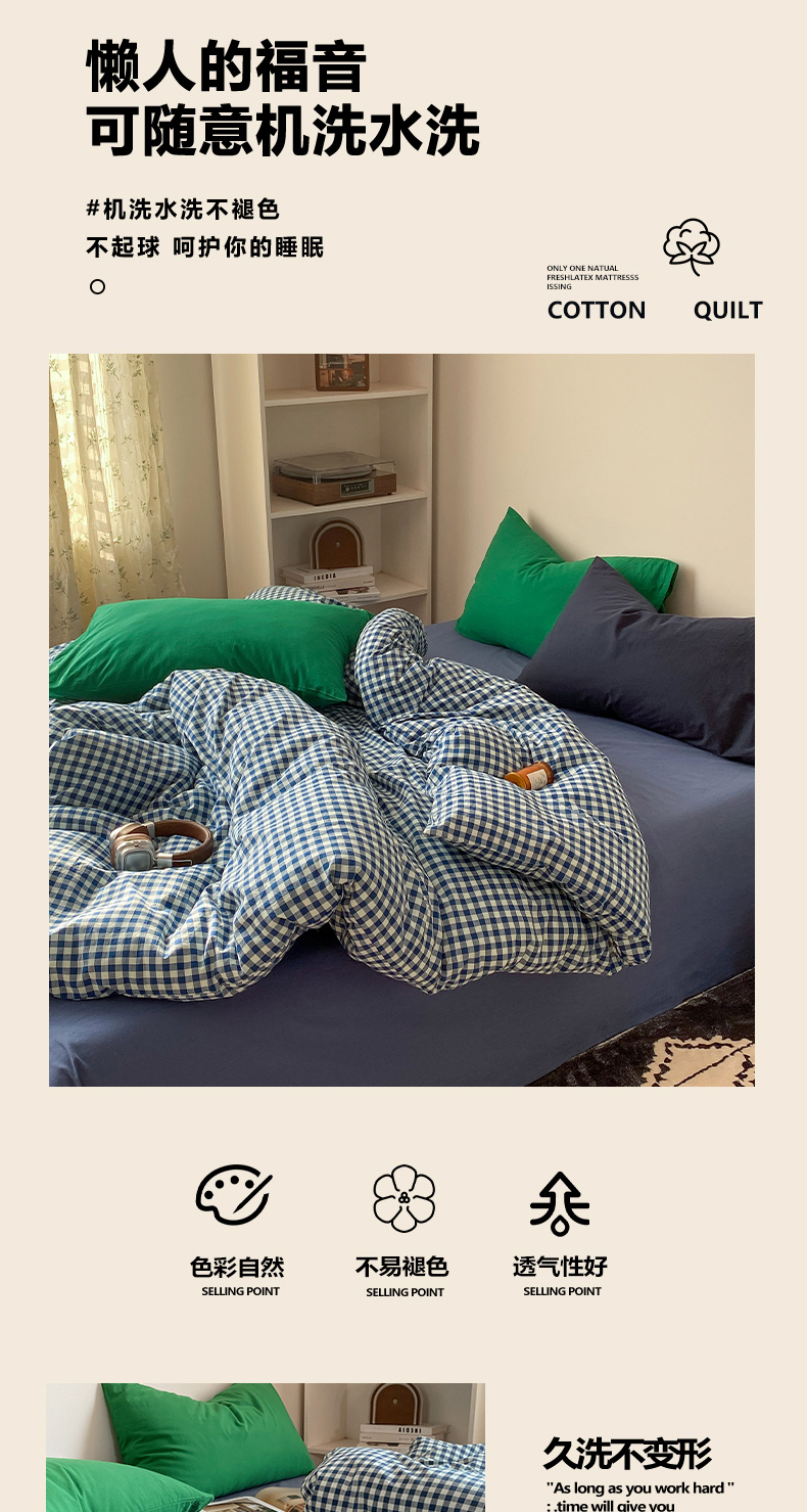 (总)对白 2026新款ins风全棉色织水洗棉纯棉简约极简格子系列单被套-草莓奶昔,草莓奶昔