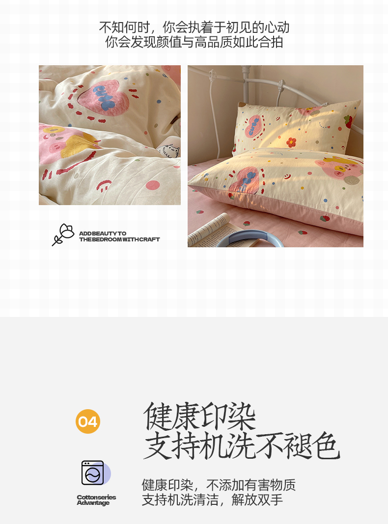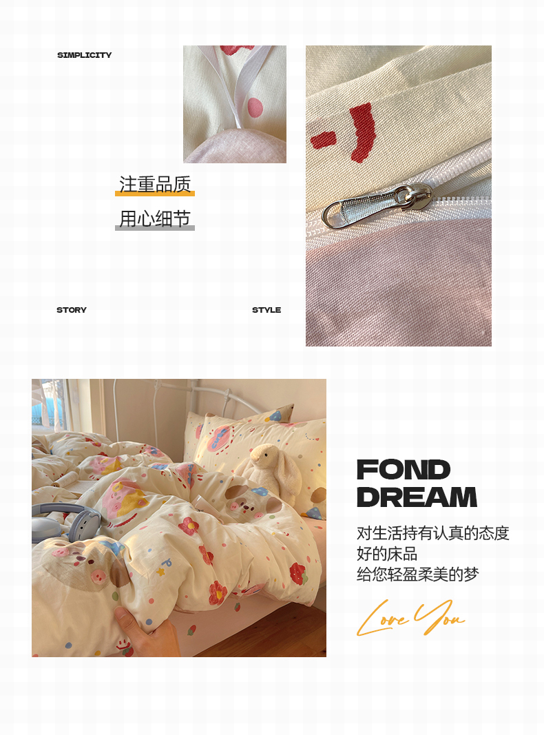 商品名称:桃子家居 2026新款纯棉13070小清新卡通少女可爱全棉系列四件套 棉-花花酱
