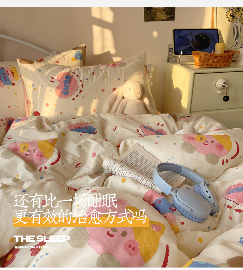 桃子家居 2026新款纯棉13070小清新卡通少女可爱全棉系列四件套 棉-花花酱