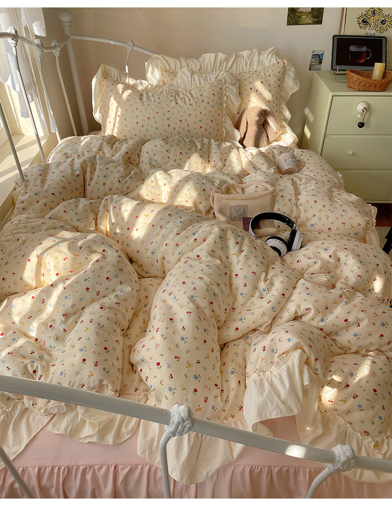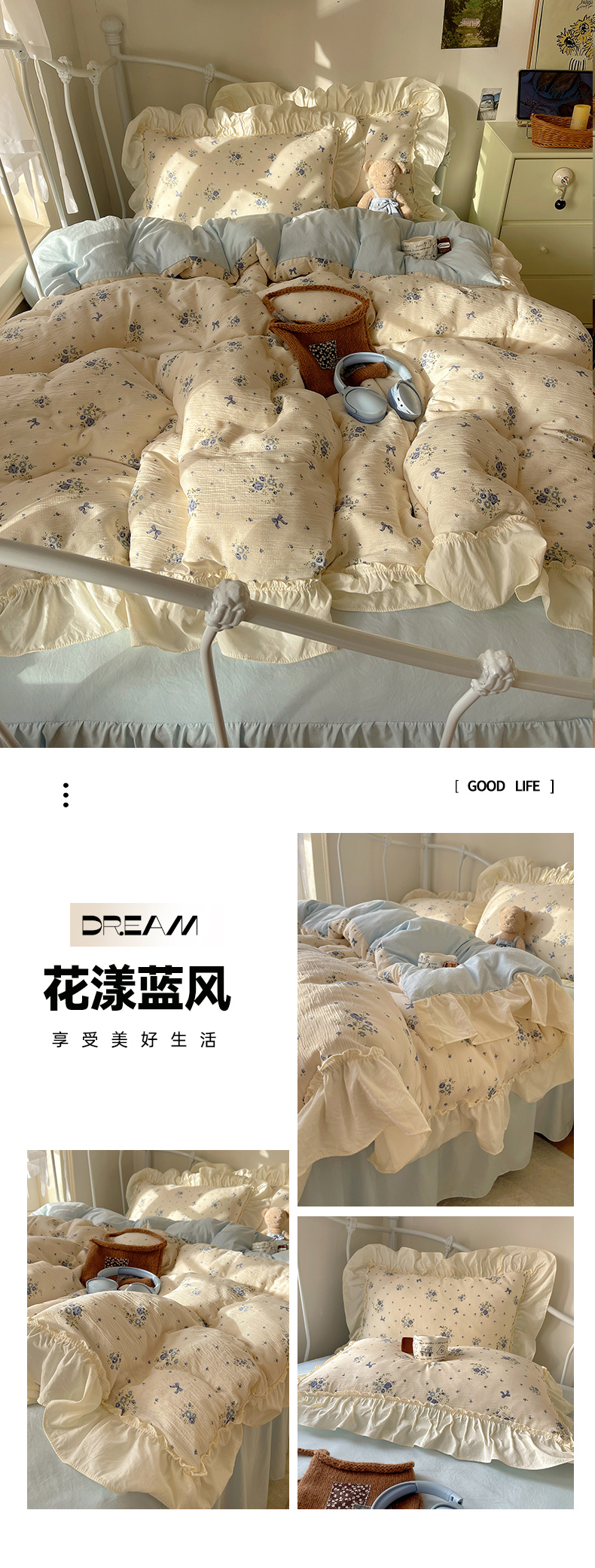 当前位置: 91家纺网 > 商品网购 > 床品套件 > 四件套 > 其它四件套 > 轻奢坊 2026新款皱皱纱韩系碎花法式花边四件套 花漾星球
