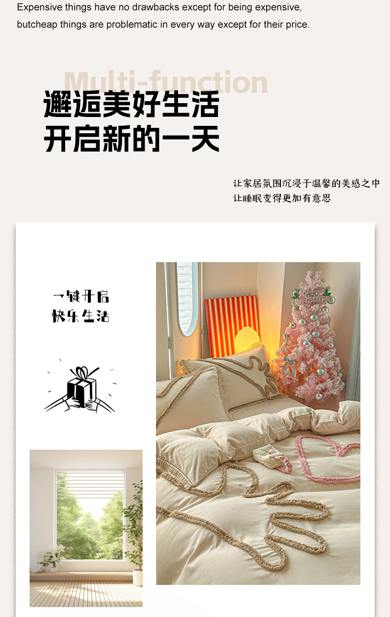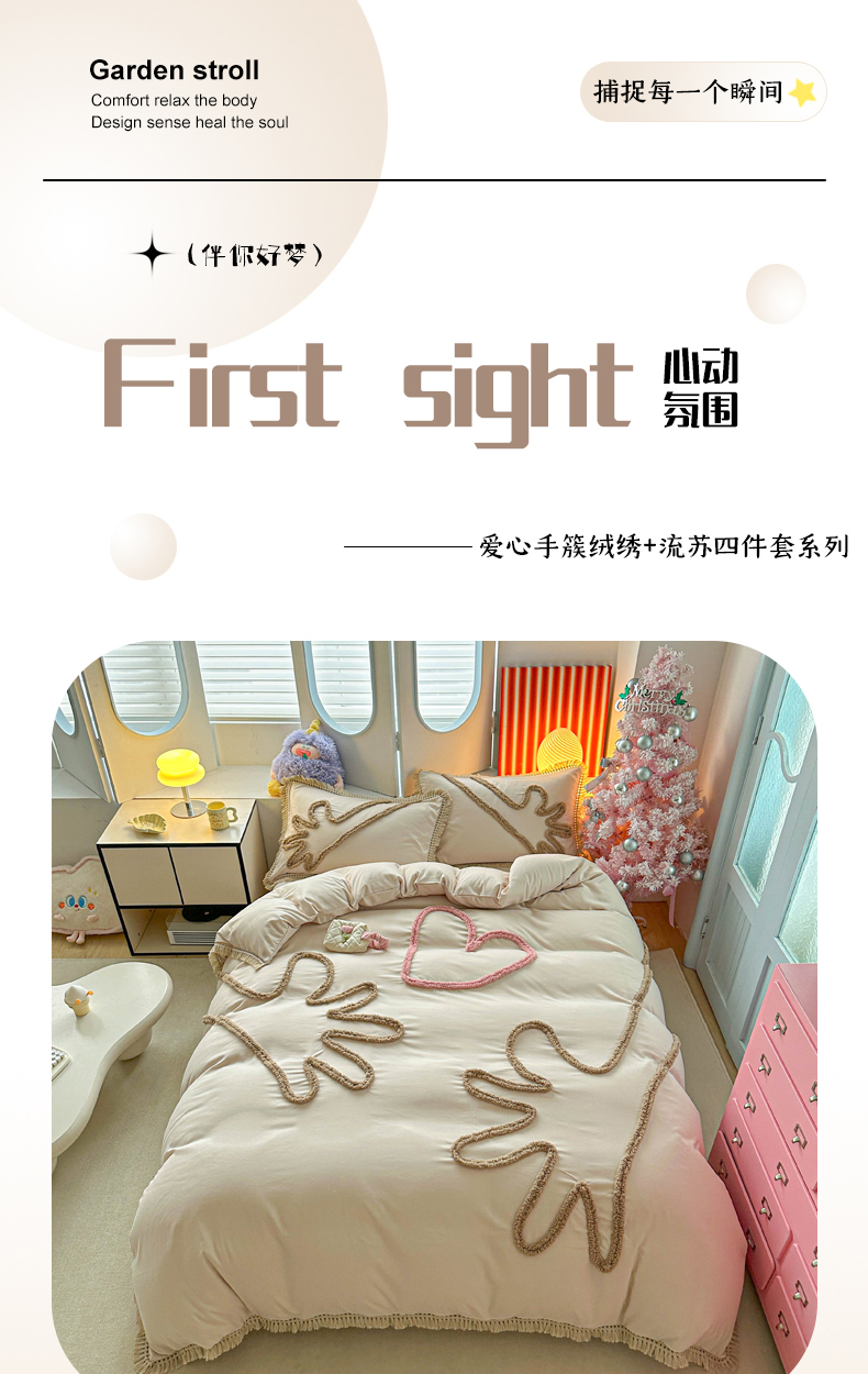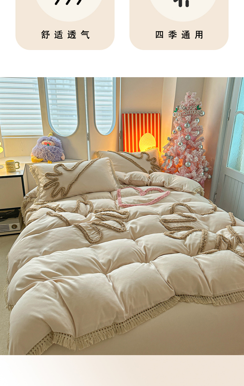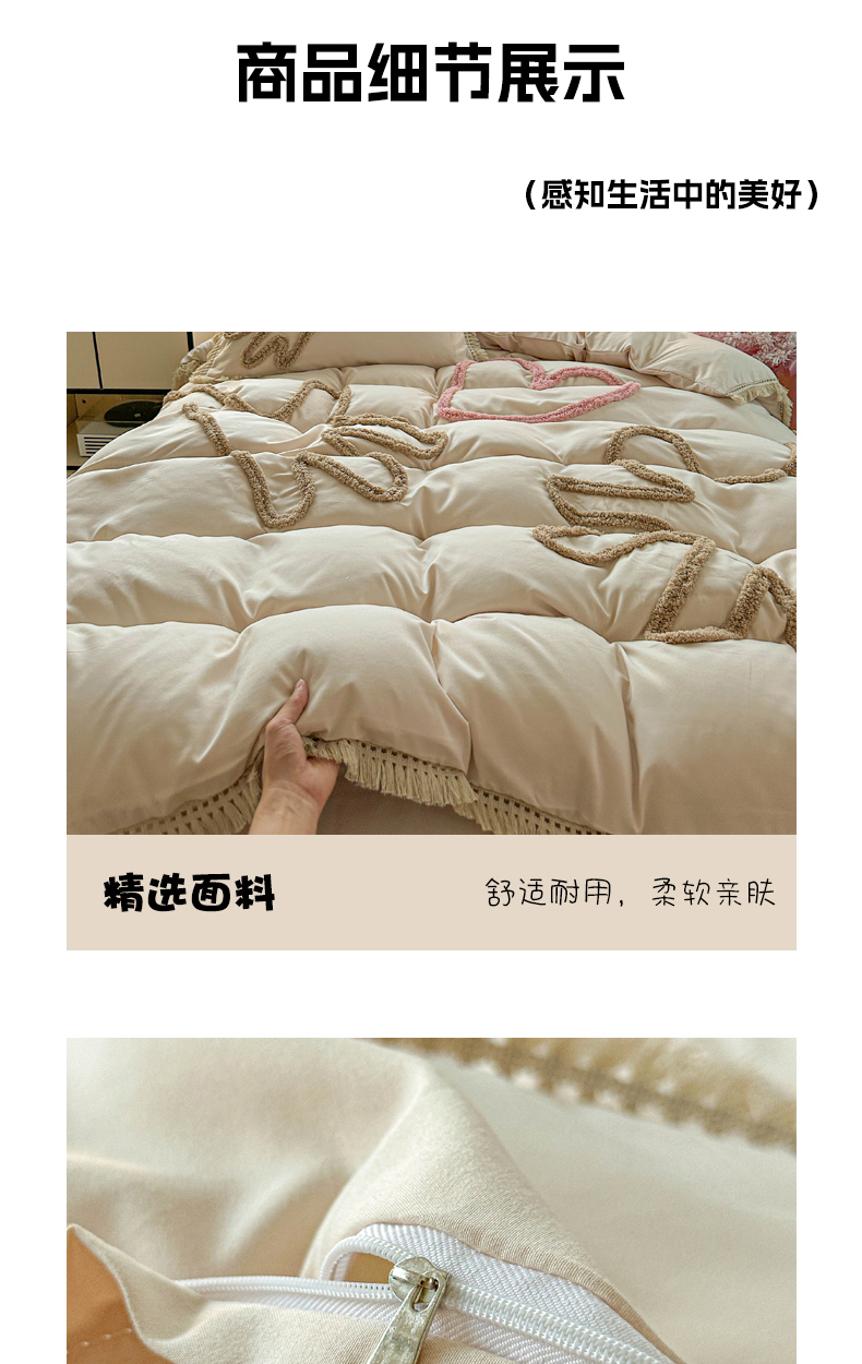当前位置: 91家纺网 > 商品网购 > 床品套件 > 四件套 > 其它四件套 > 缘生活 2026新款立体簇绒绣流苏四件套 大爱爱心手-卡其