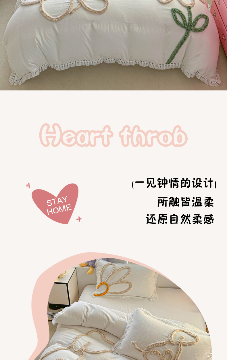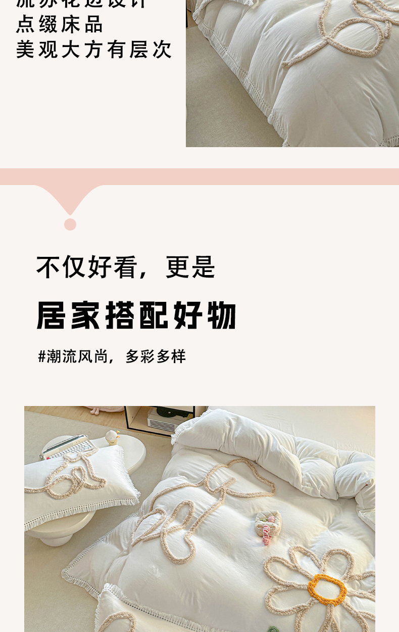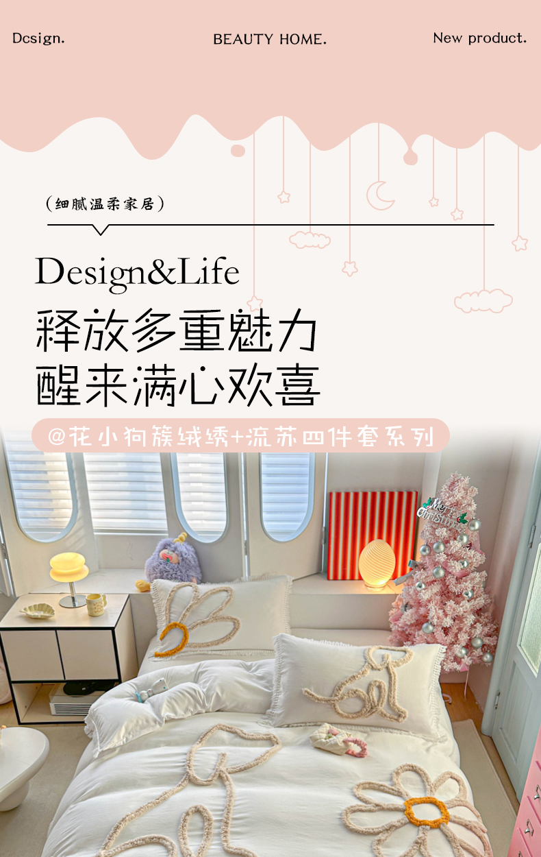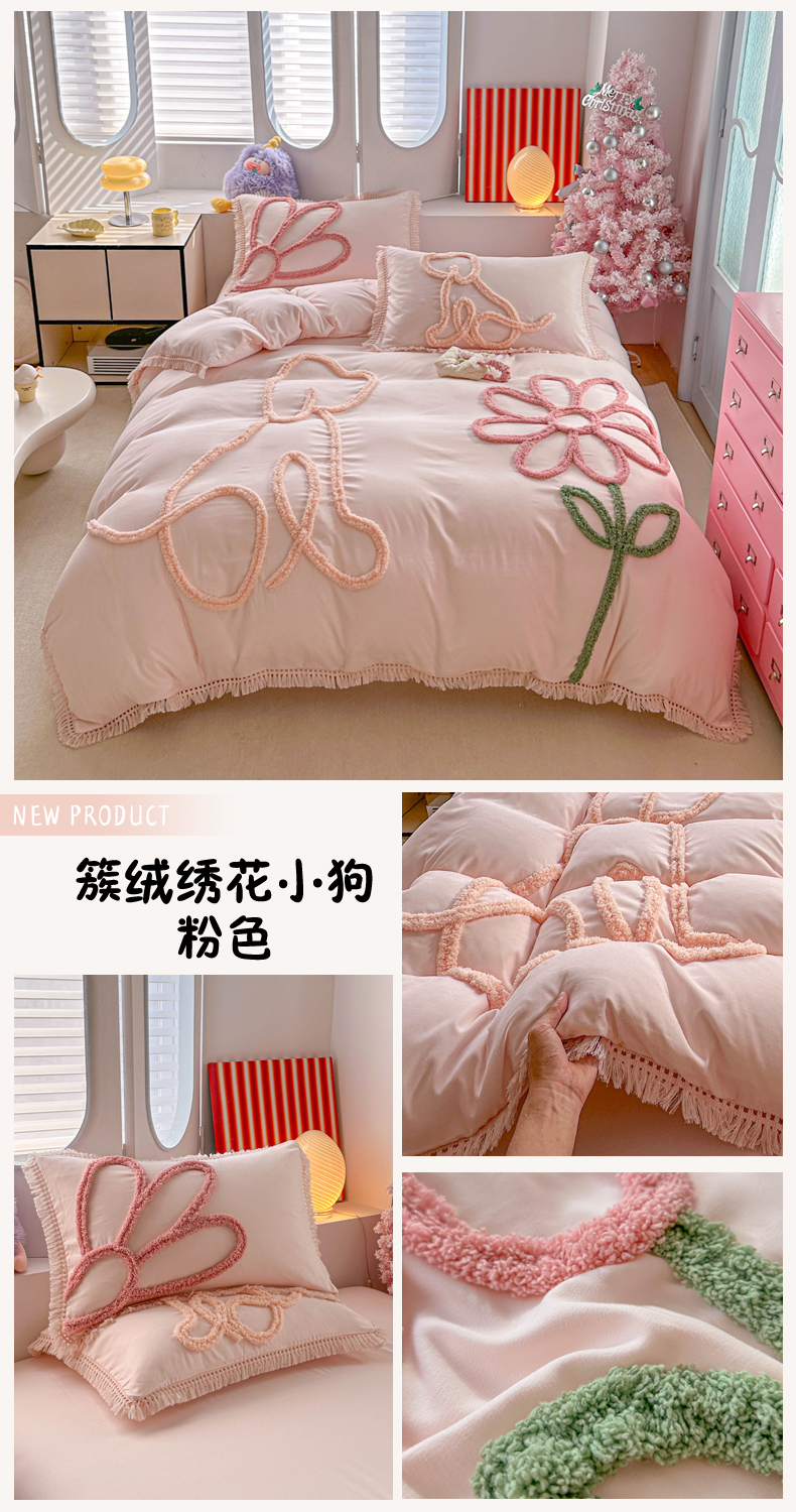 当前位置: 91家纺网 > 商品网购 > 床品套件 > 四件套 > 其它四件套 > 缘生活 2026新款立体簇绒绣流苏四件套 大爱花小狗-本白