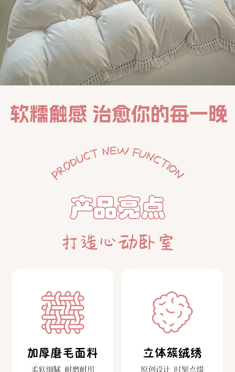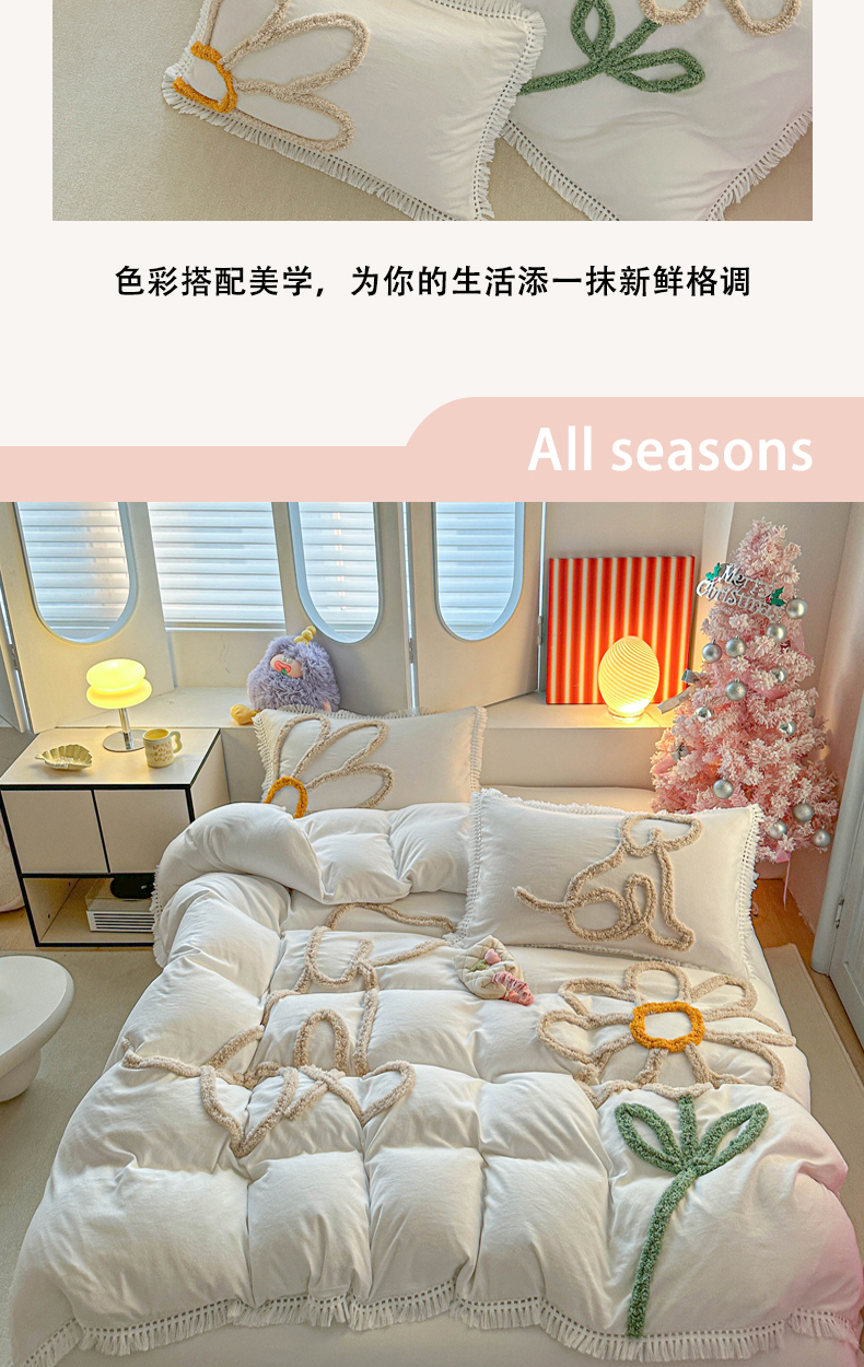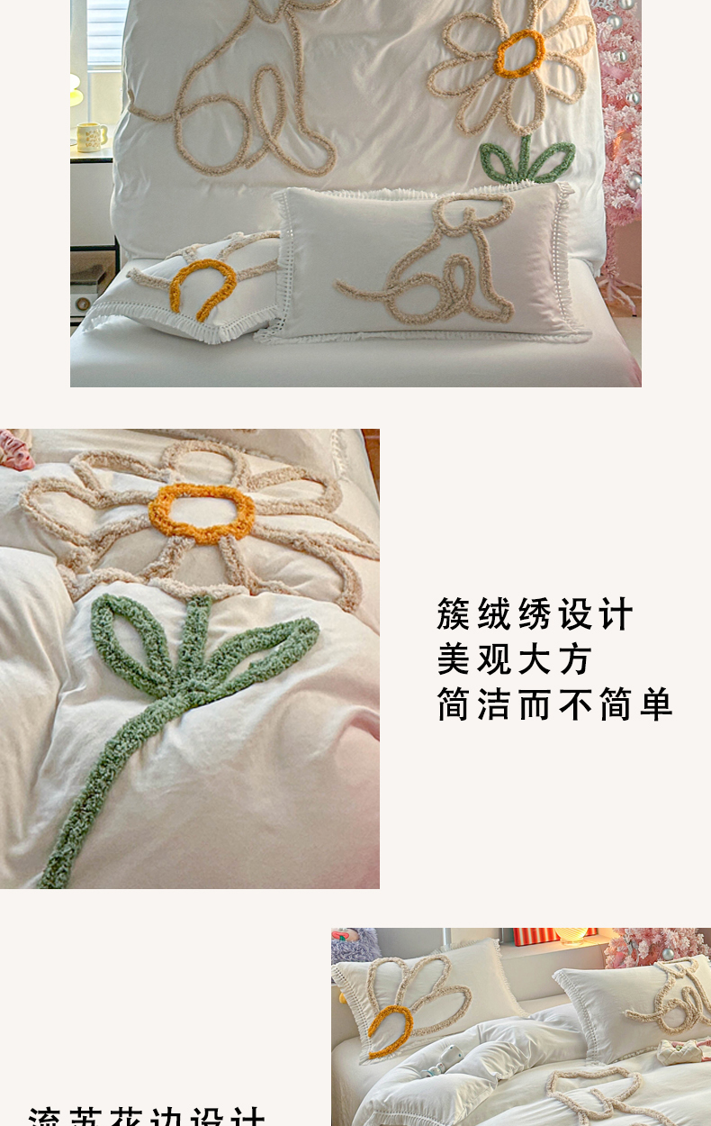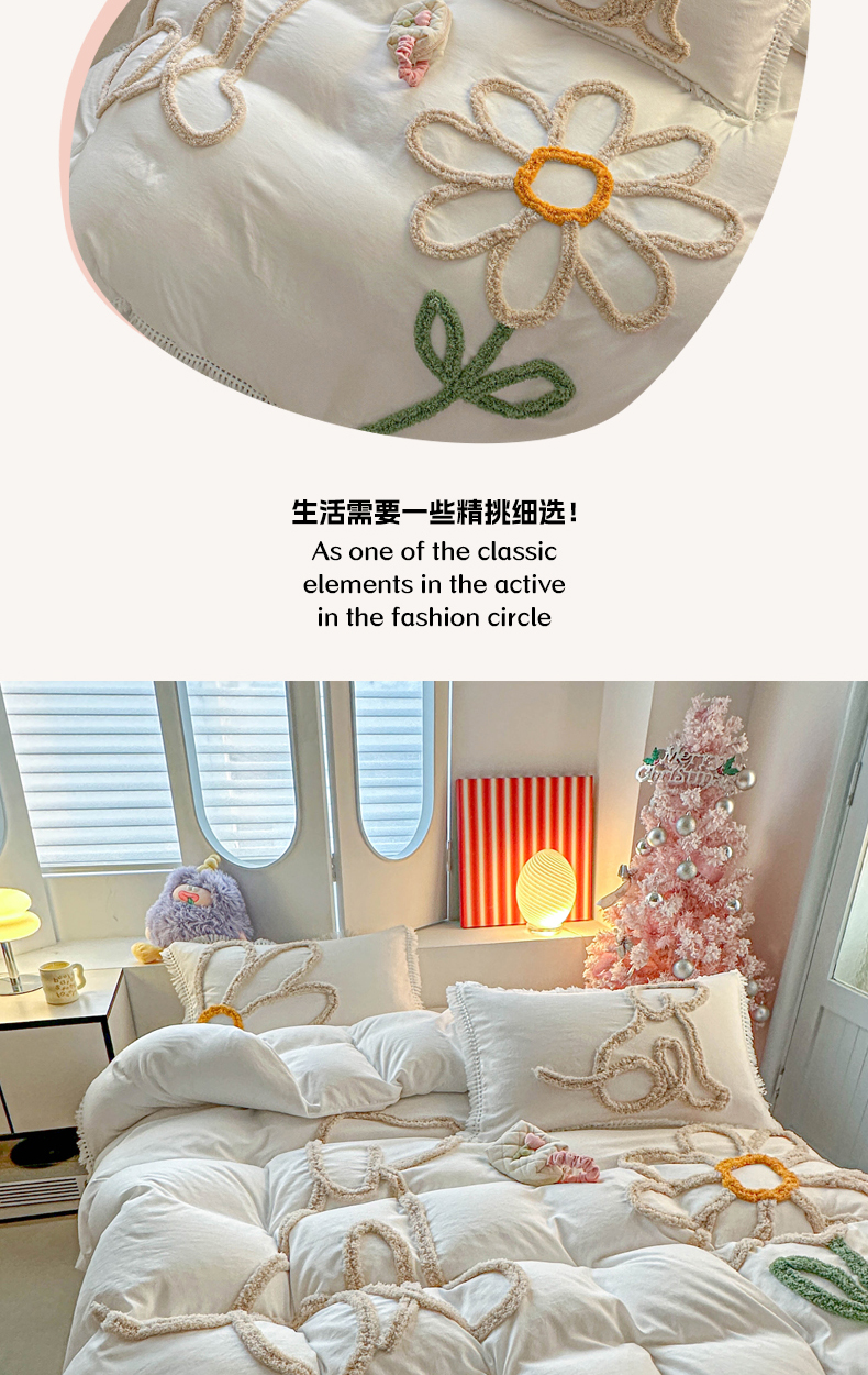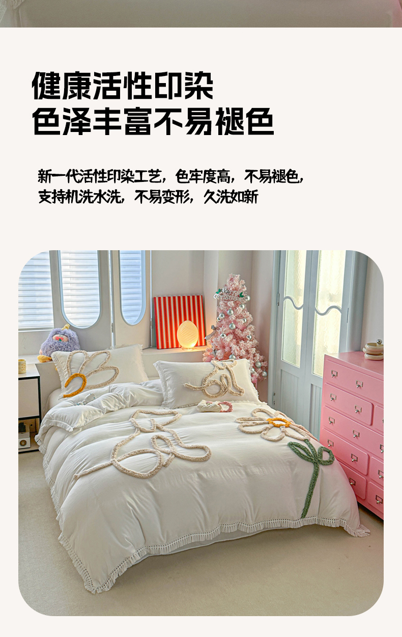 当前位置: 91家纺网 > 商品网购 > 床品套件 > 四件套 > 其它四件套 > 缘生活 2026新款立体簇绒绣流苏四件套 大爱花小狗-本白