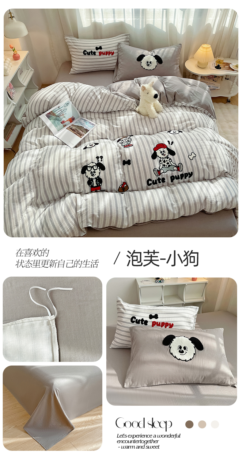 (总)炫拼家纺 2026新款多巴胺系列A类全棉40支水洗棉卡通毛巾绣四件套,多巴胺一咖啡猫,多巴胺-星星猫,多巴胺一彩色狗,多巴胺一小熊与狗,多巴胺-欢乐派对,多巴胺-小黑熊,多巴胺-面包熊,多巴胺-酷仔小树,多巴胺-美猴王,多巴胺-一起嗨,多巴胺-潦草小狗,多巴胺-快乐伙伴,多巴胺-惬意时光,多巴胺-快乐时光,多巴胺-No1