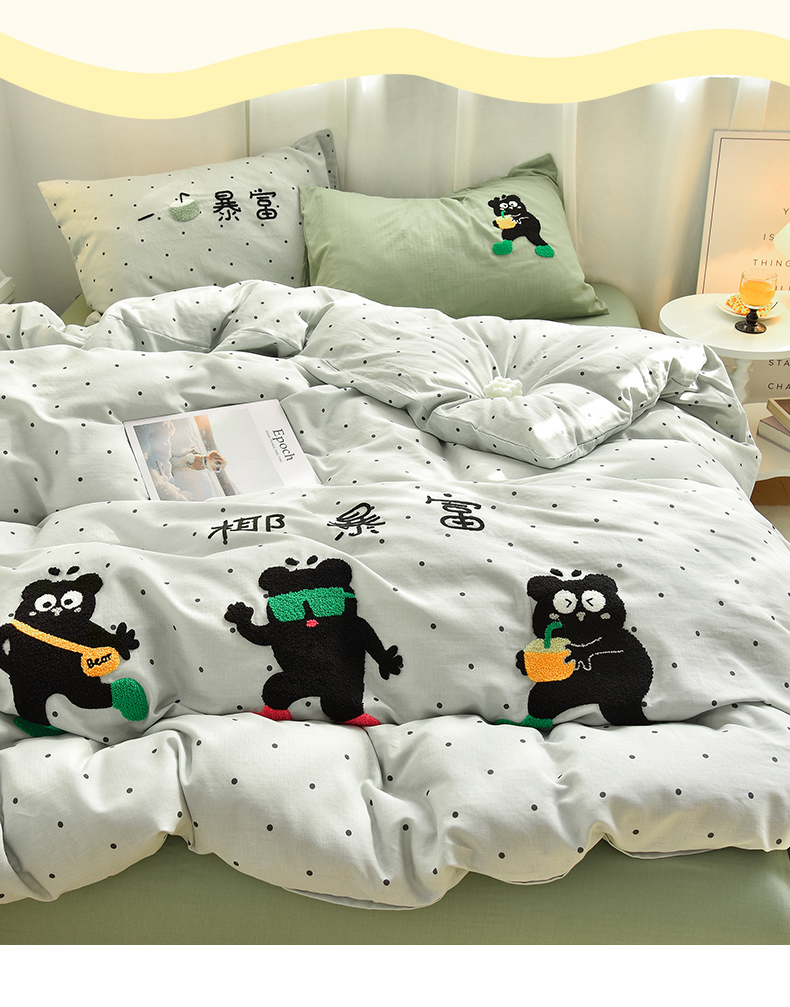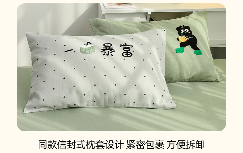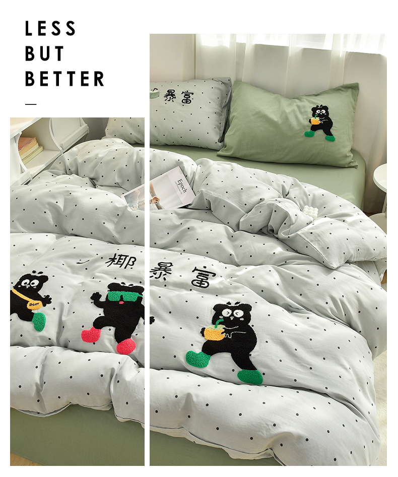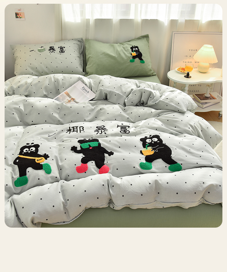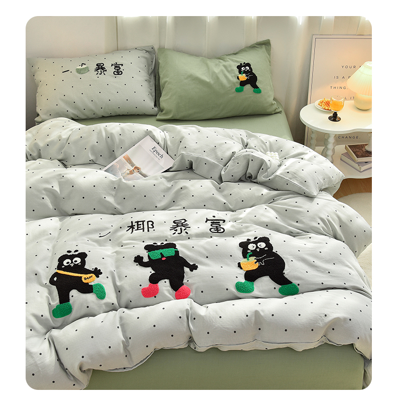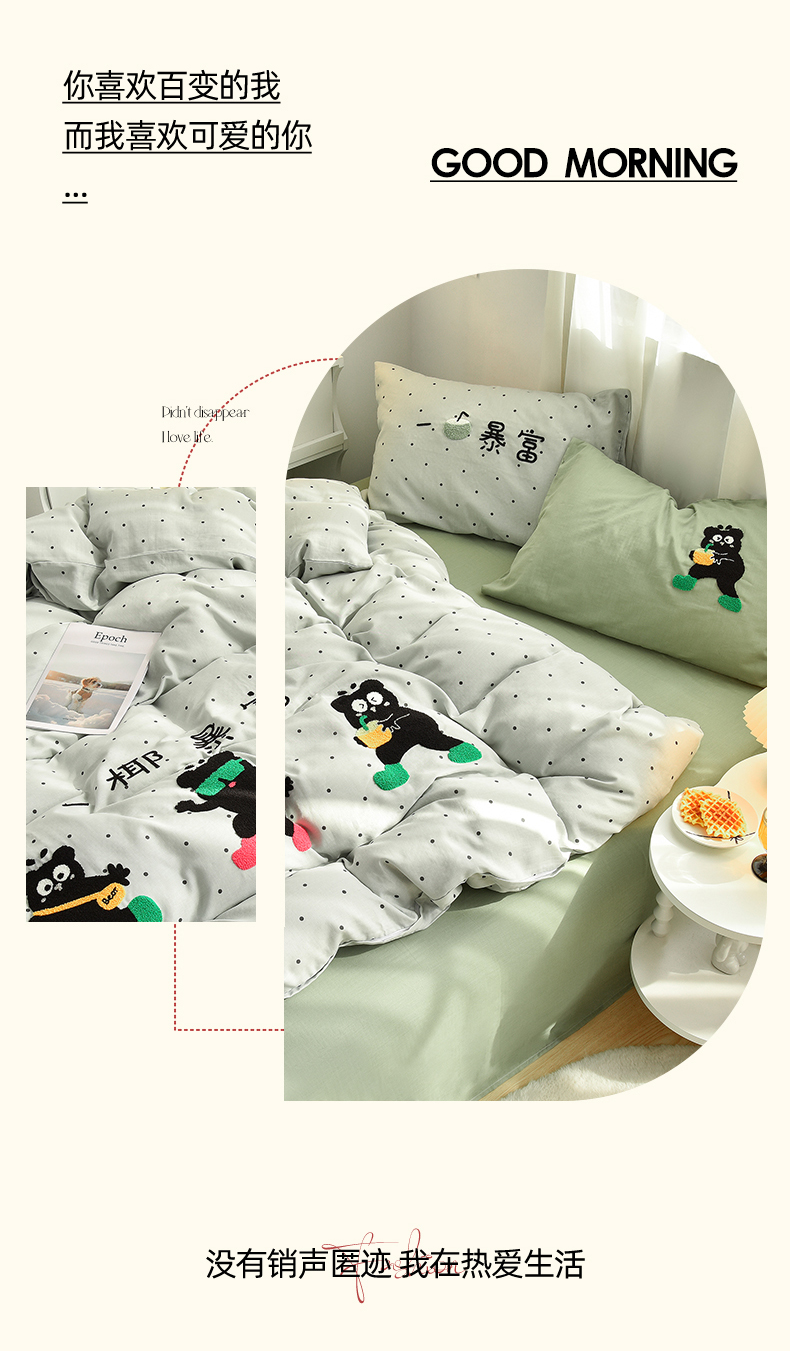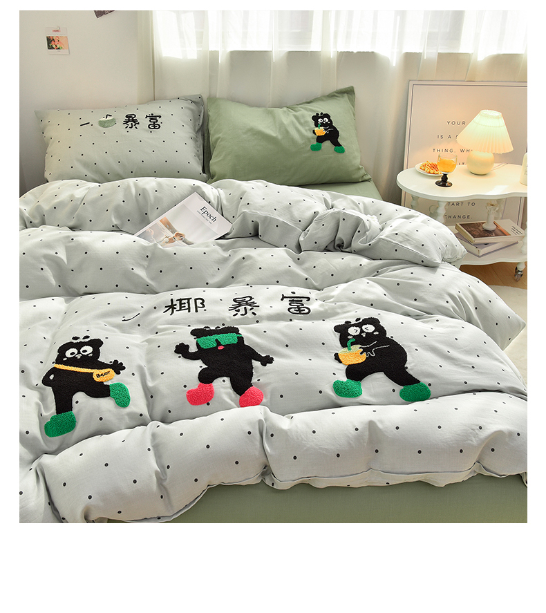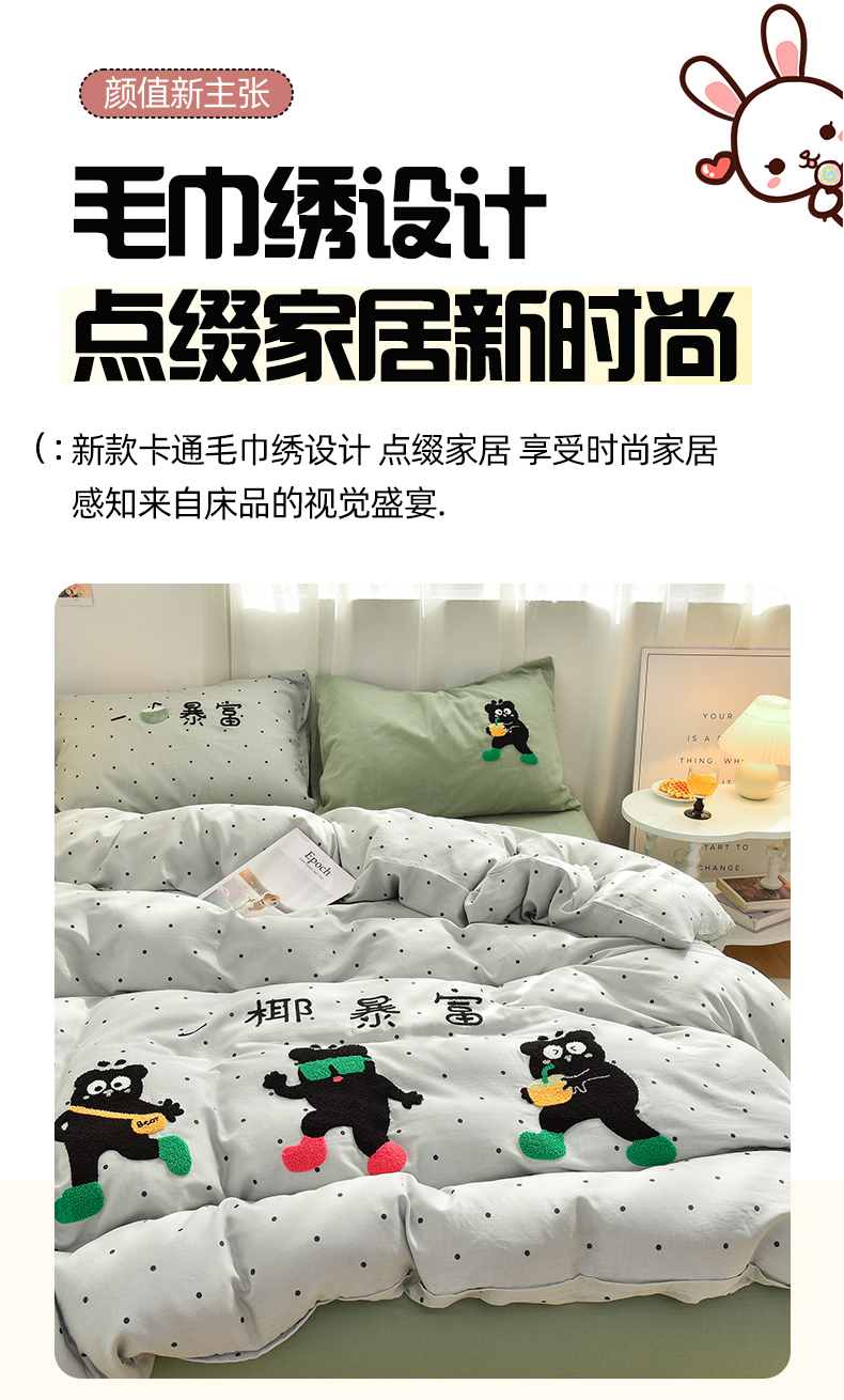 (总)炫拼家纺 2025新款A类全棉40支水洗棉毛巾绣四件套-卡通多巴胺,面包熊,快乐时光,欢乐派对,酷仔小树,快乐伙伴,潦草小狗,美猴王,惬意时光,小黑熊,一起嗨,No-1