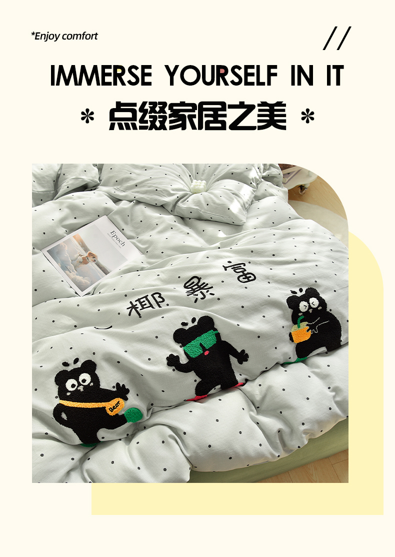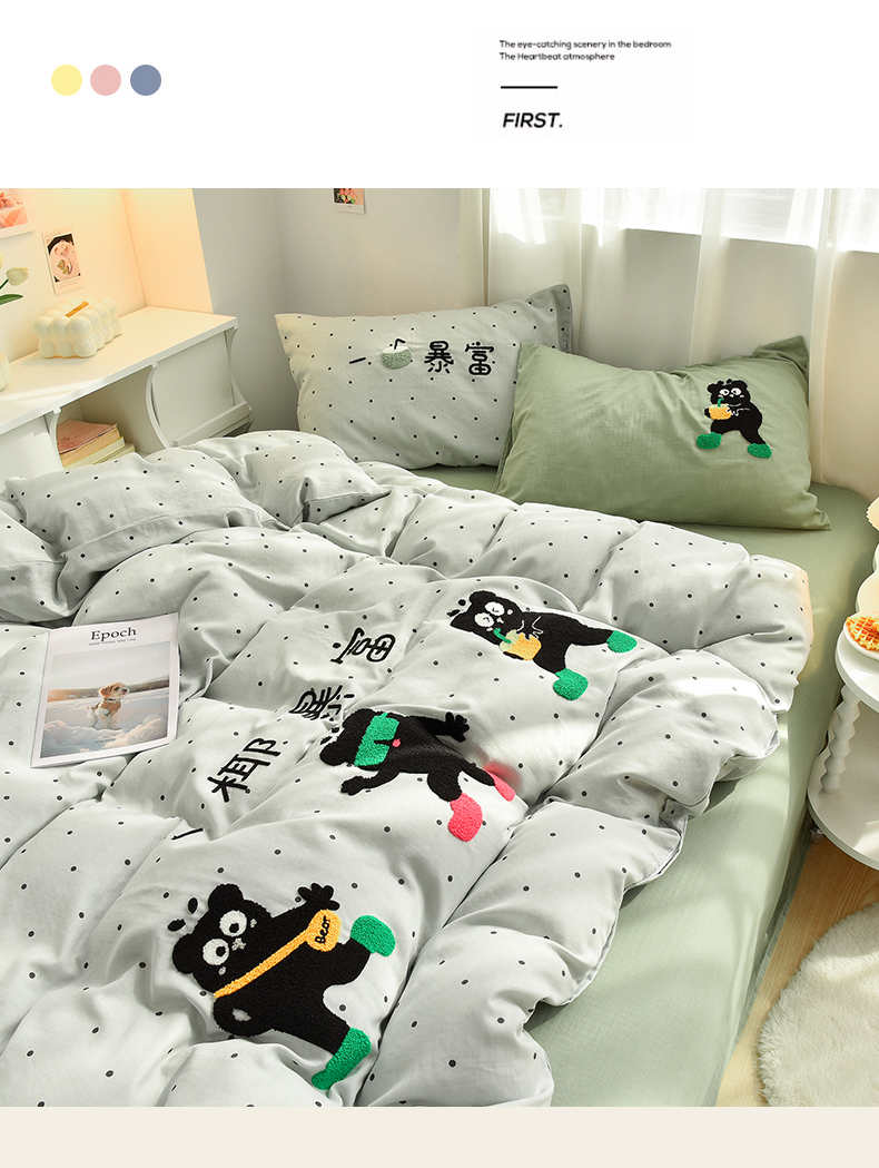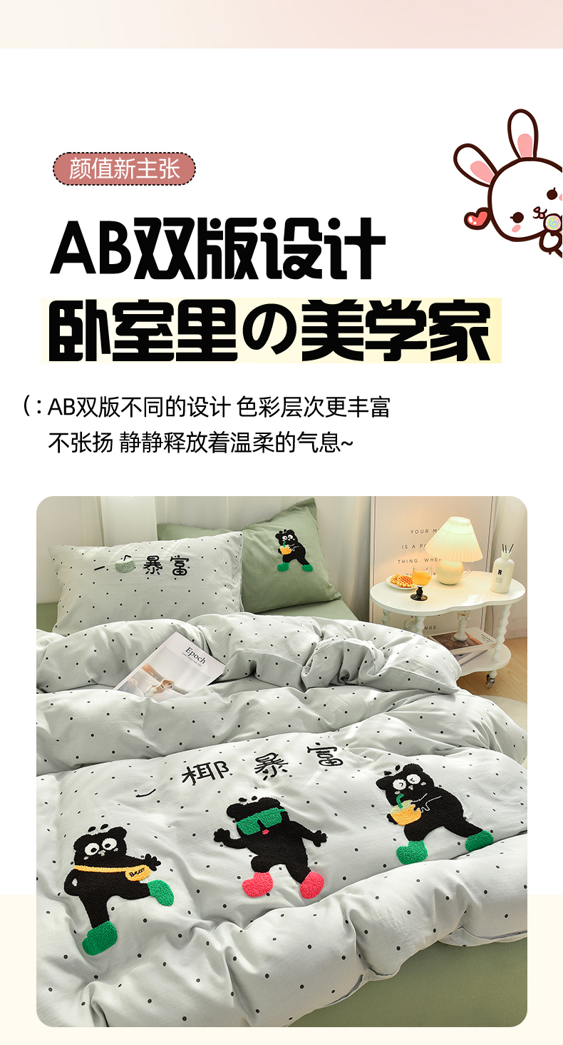 (总)炫拼家纺 2026新款多巴胺系列A类全棉40支水洗棉卡通毛巾绣四件套,多巴胺一咖啡猫,多巴胺-星星猫,多巴胺一彩色狗,多巴胺一小熊与狗,多巴胺-欢乐派对,多巴胺-小黑熊,多巴胺-面包熊,多巴胺-酷仔小树,多巴胺-美猴王,多巴胺-一起嗨,多巴胺-潦草小狗,多巴胺-快乐伙伴,多巴胺-惬意时光,多巴胺-快乐时光,多巴胺-No1