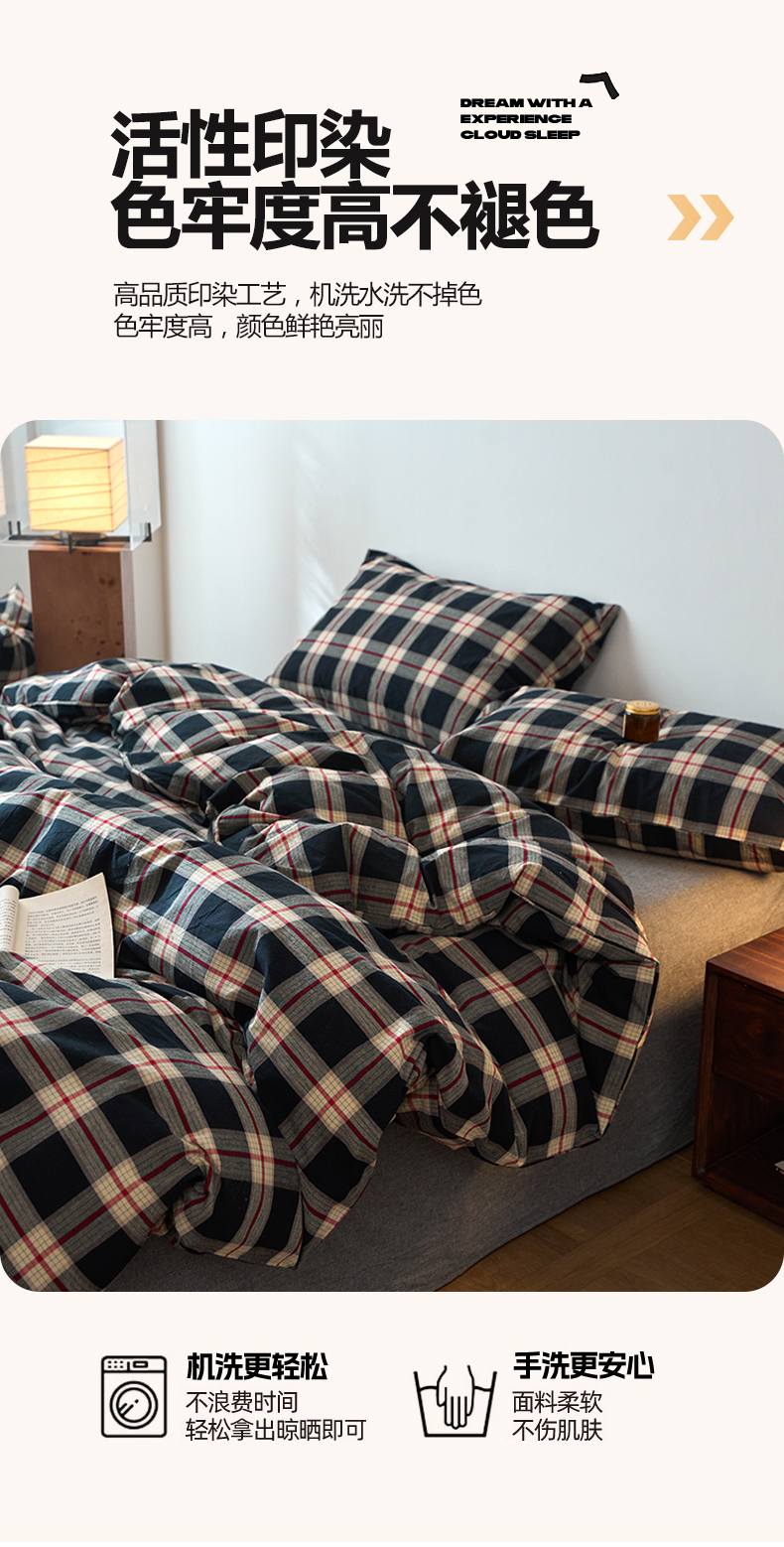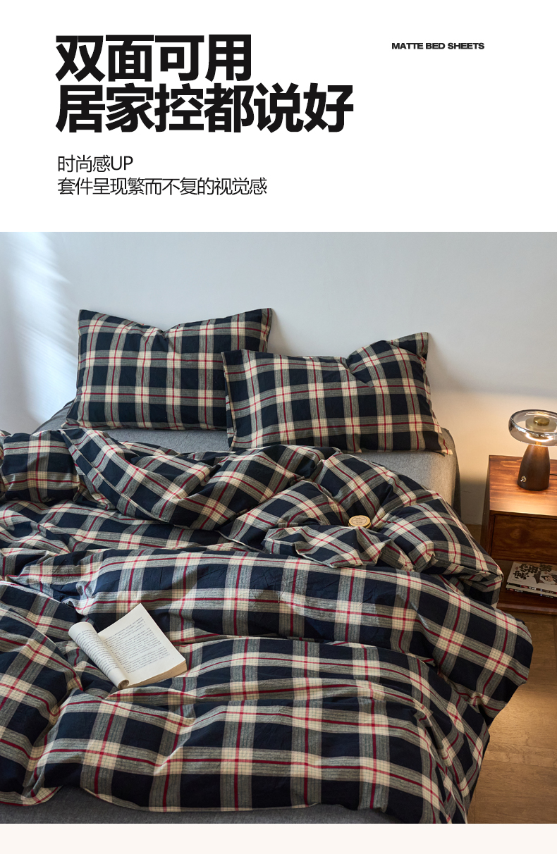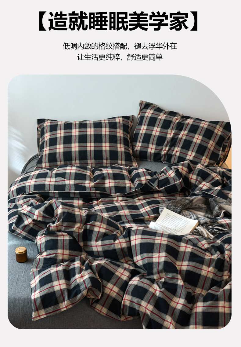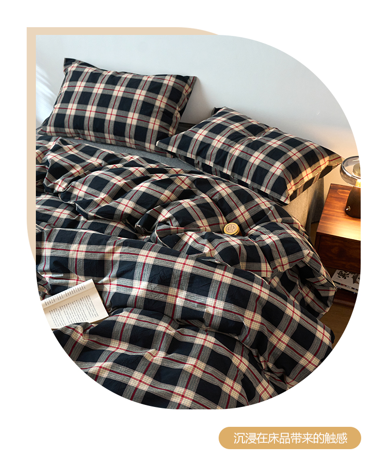 当前位置: 91家纺网 > 商品网购 > 床品套件 > 四件套 > 全棉普通四件套 > 兰紫橙家纺 2026新款全棉A类深色复古色织方格子水洗棉-赫本雅素系列(含买家秀和质检报告) 木槿黑