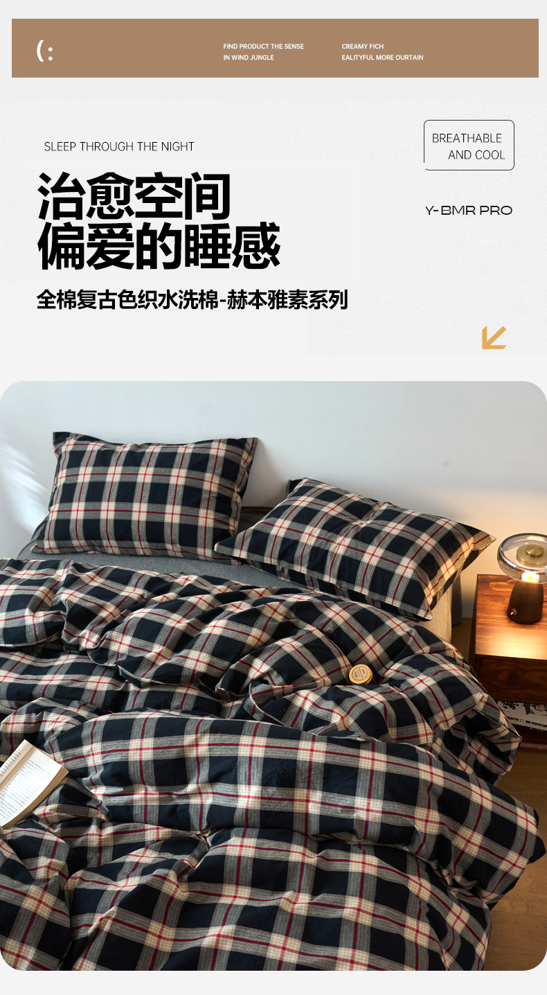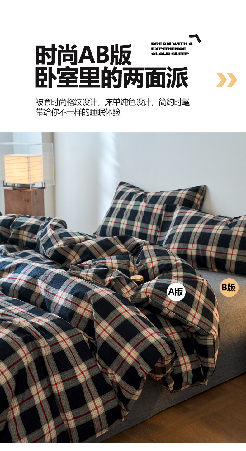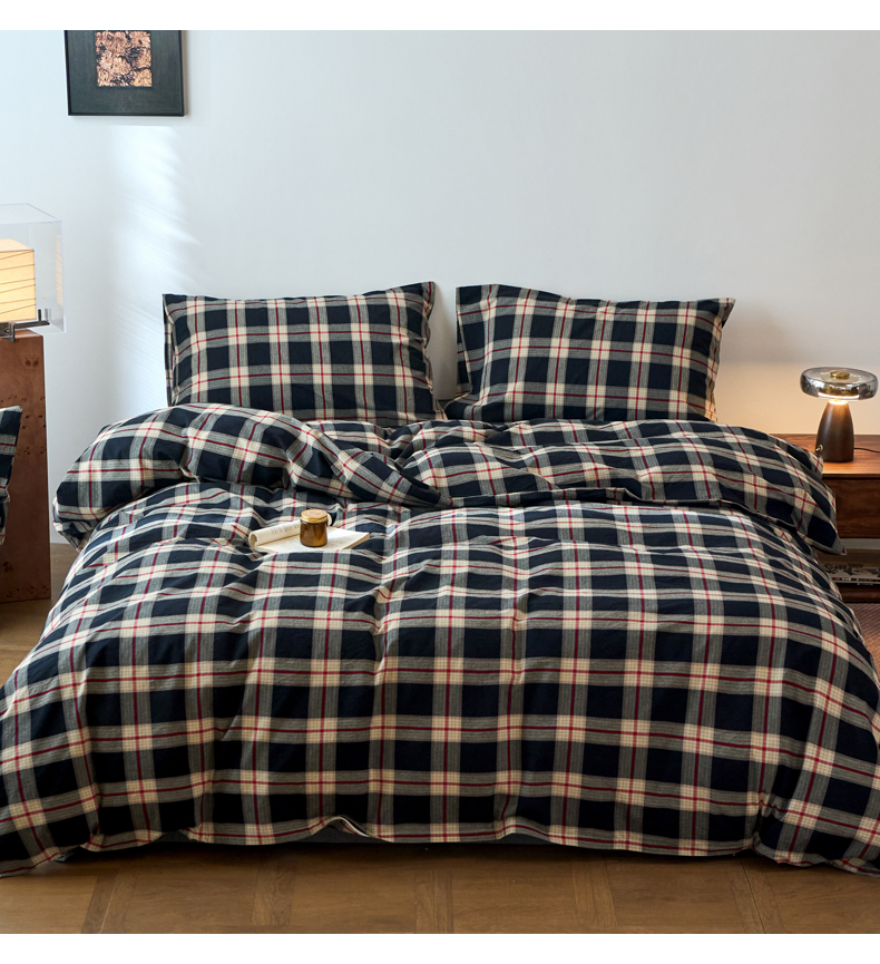 当前位置: 91家纺网 > 商品网购 > 床品套件 > 四件套 > 全棉普通四件套 > 兰紫橙家纺 2026新款全棉A类深色复古色织方格子水洗棉-赫本雅素系列(含买家秀和质检报告) 木槿黑