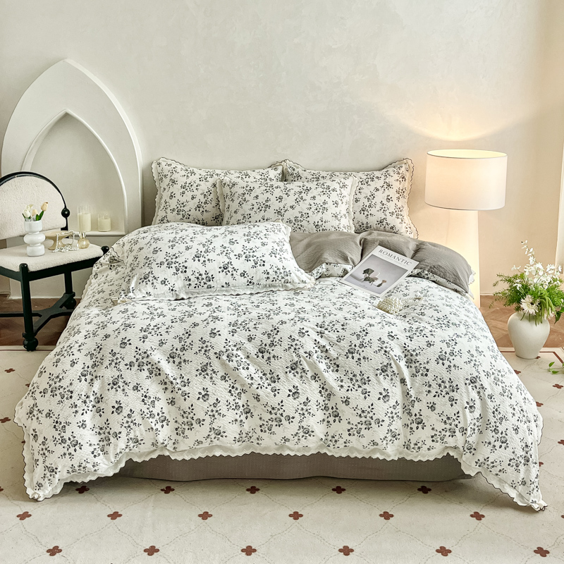 尚美 2026新款M泡芙棉床单全棉绣花小花韩版四件套 M佳音