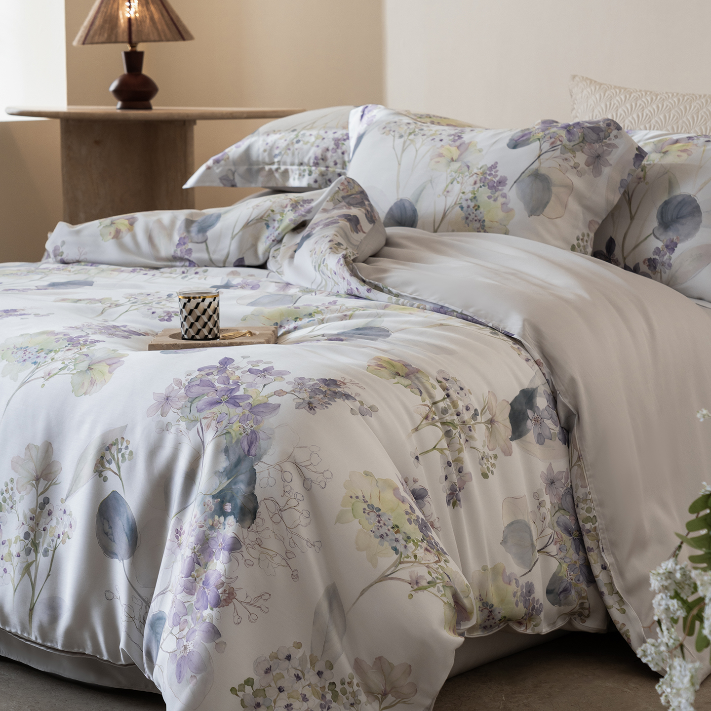 佳汐蓝家纺 2026新款春夏天丝数码印花(挂边款)四件套 华俞-紫