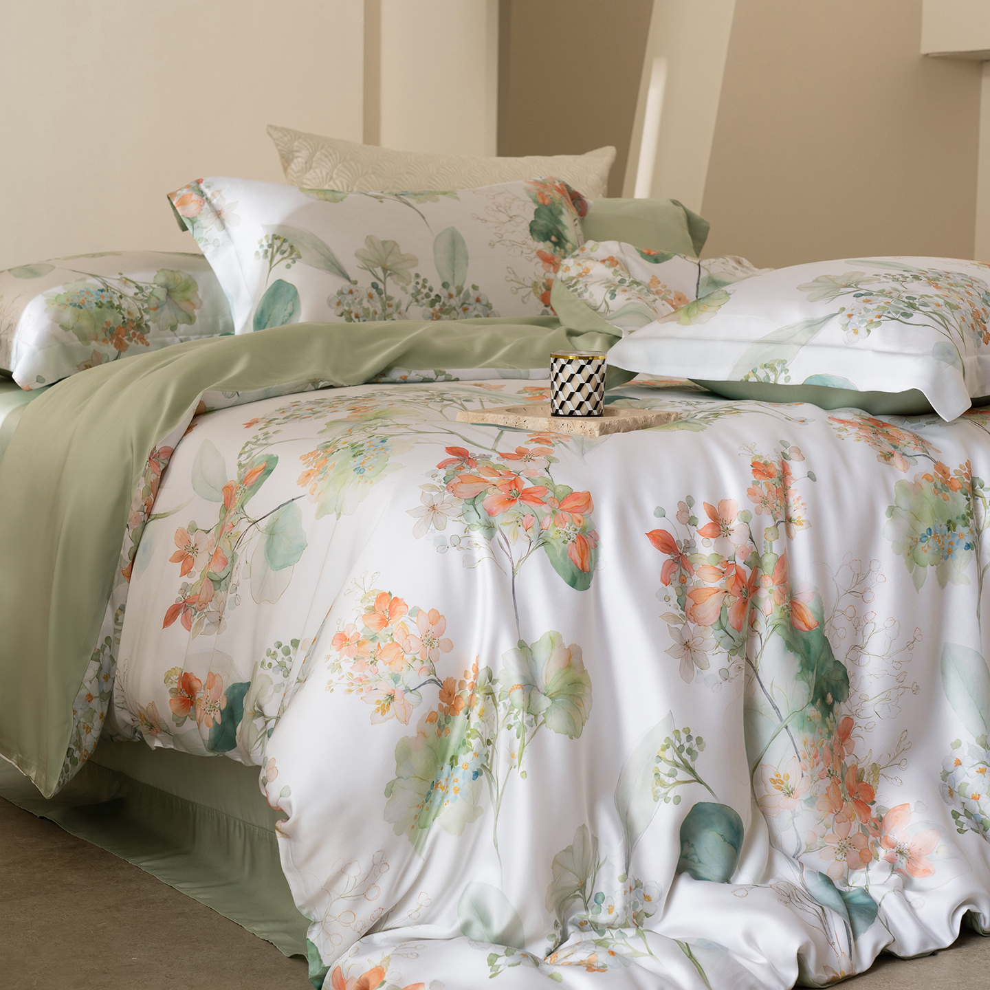 (总)佳汐蓝家纺 2026新款春夏天丝数码印花(挂边款)四件套,彩绘园-黄,淡晓-粉黄,荷塘月色-绿,荷塘月色-紫,华俞-绿,华俞-紫,梦园-粉,梦园-绿,绮梦眠-绿,茹艺-兰,雾岚-黄,雾岚-兰,夏伊人,雨鑫-黄,雨鑫-紫