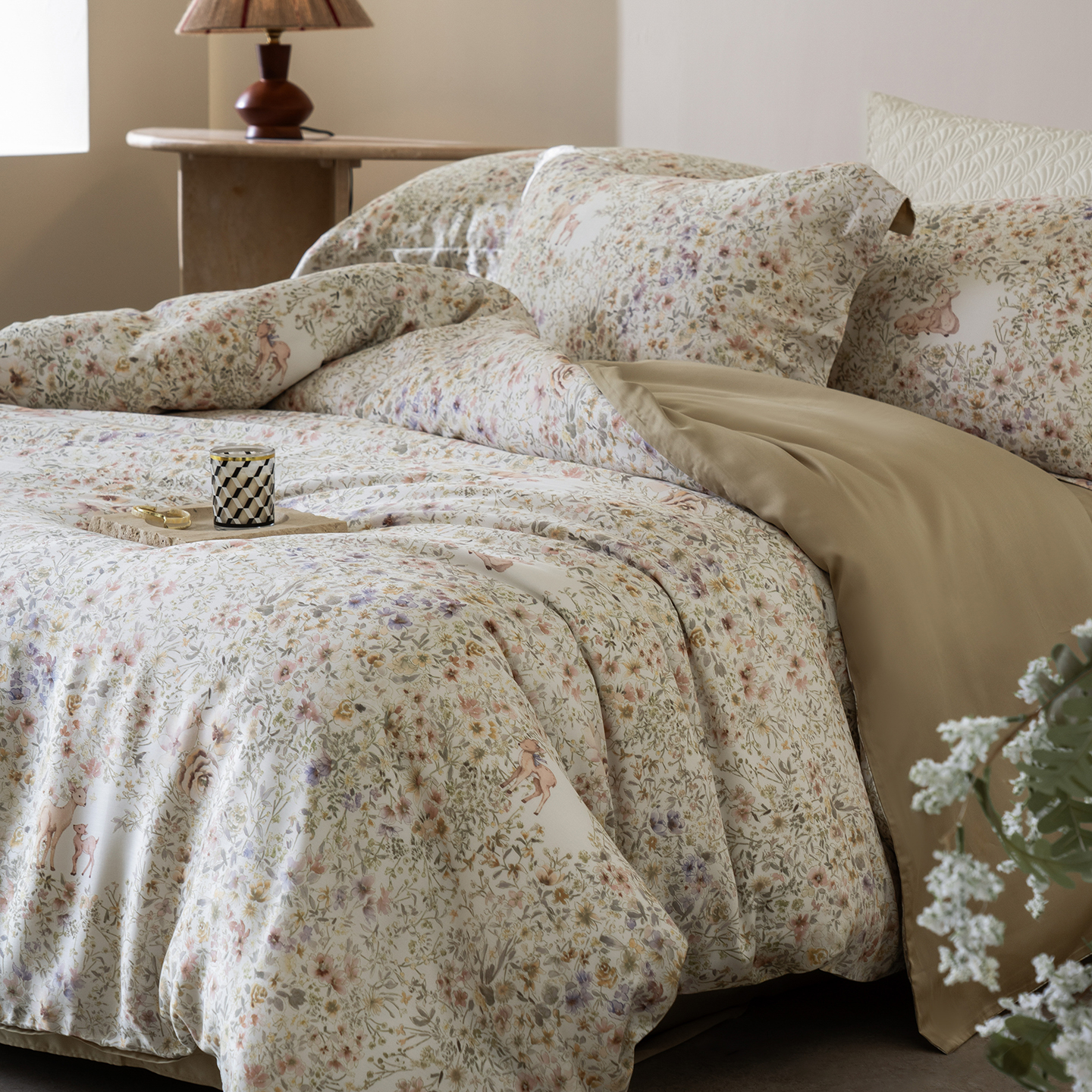 (总)佳汐蓝家纺 2026新款春夏100支全棉复古风数码印花四件套--罗曼花园,罗曼花园