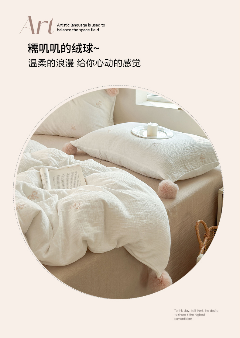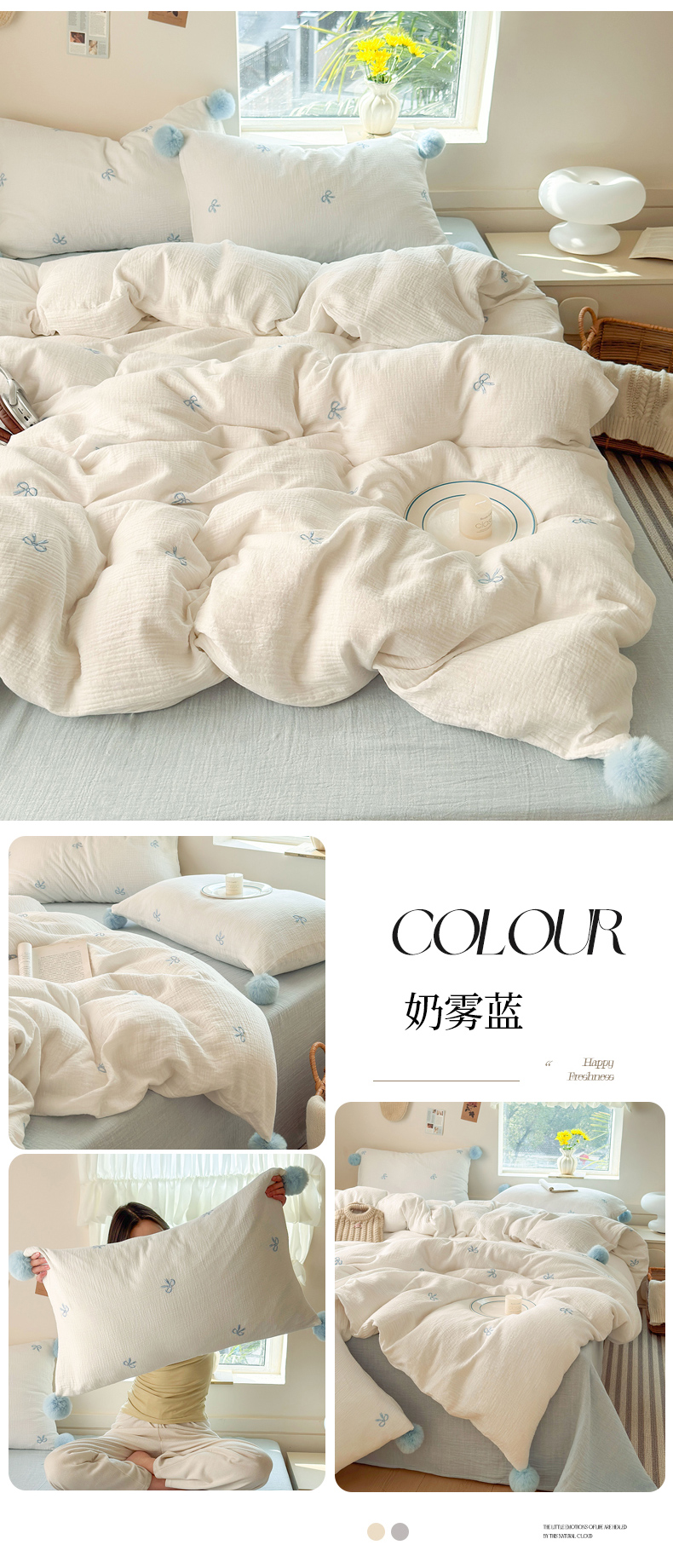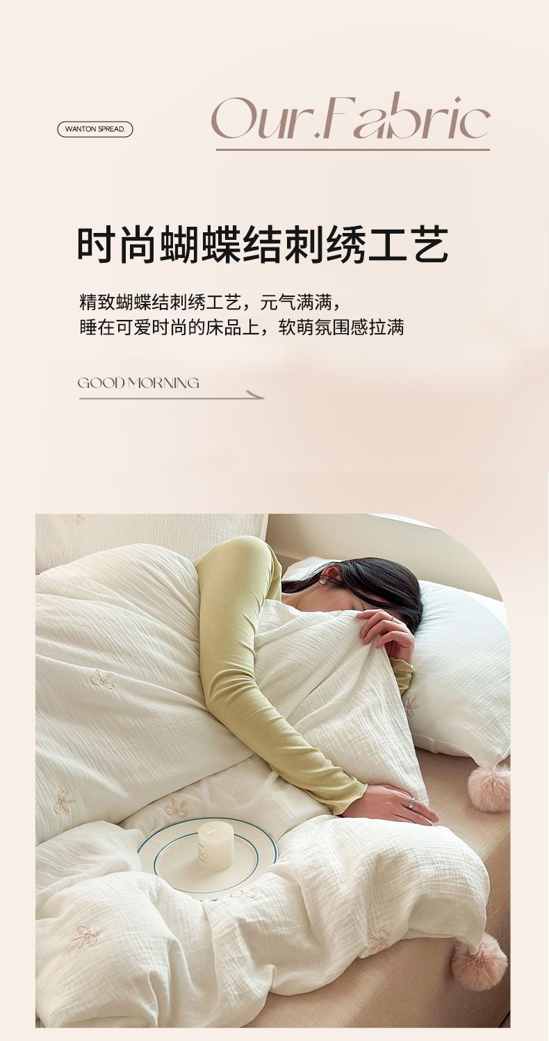 (总)木楌家居 2026年新款全棉纯棉皱皱纱四件套-云朵蝴蝶结系列