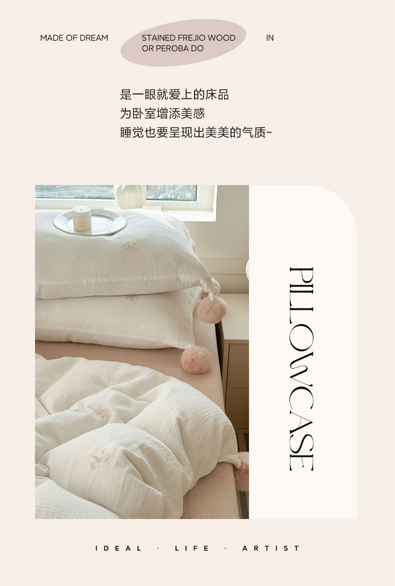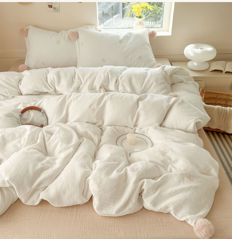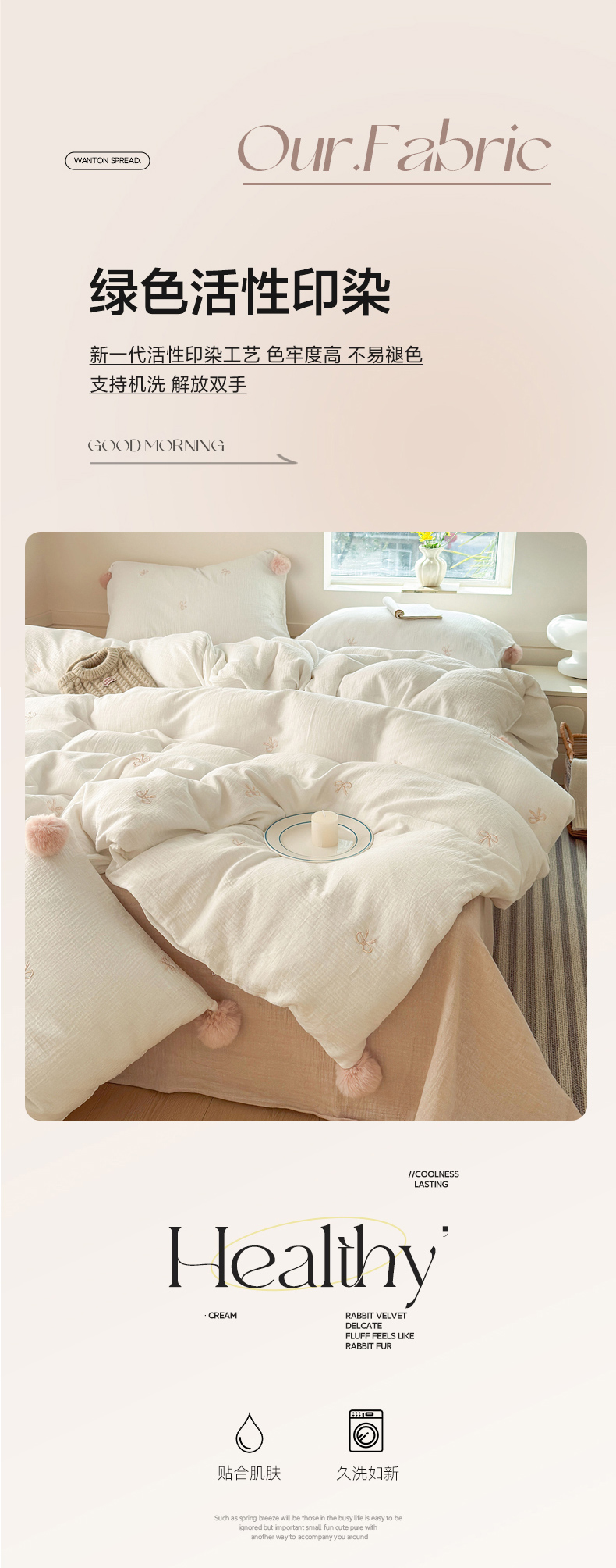 (总)木楌家居 2026新款全棉皱皱纱刺绣款夏被床盖四件套,蓓蕾,蝴蝶结,领结兔,枇杷叶,三叶草,小飞象,小玫瑰,小樱桃,星眠,幸运熊,云裳,枝意,组合图仅供参考不可下单