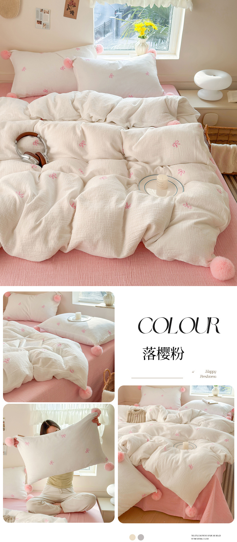 商品名称:(总)木楌家居 2026年新款全棉纯棉皱皱纱四件套-云朵蝴蝶结系列