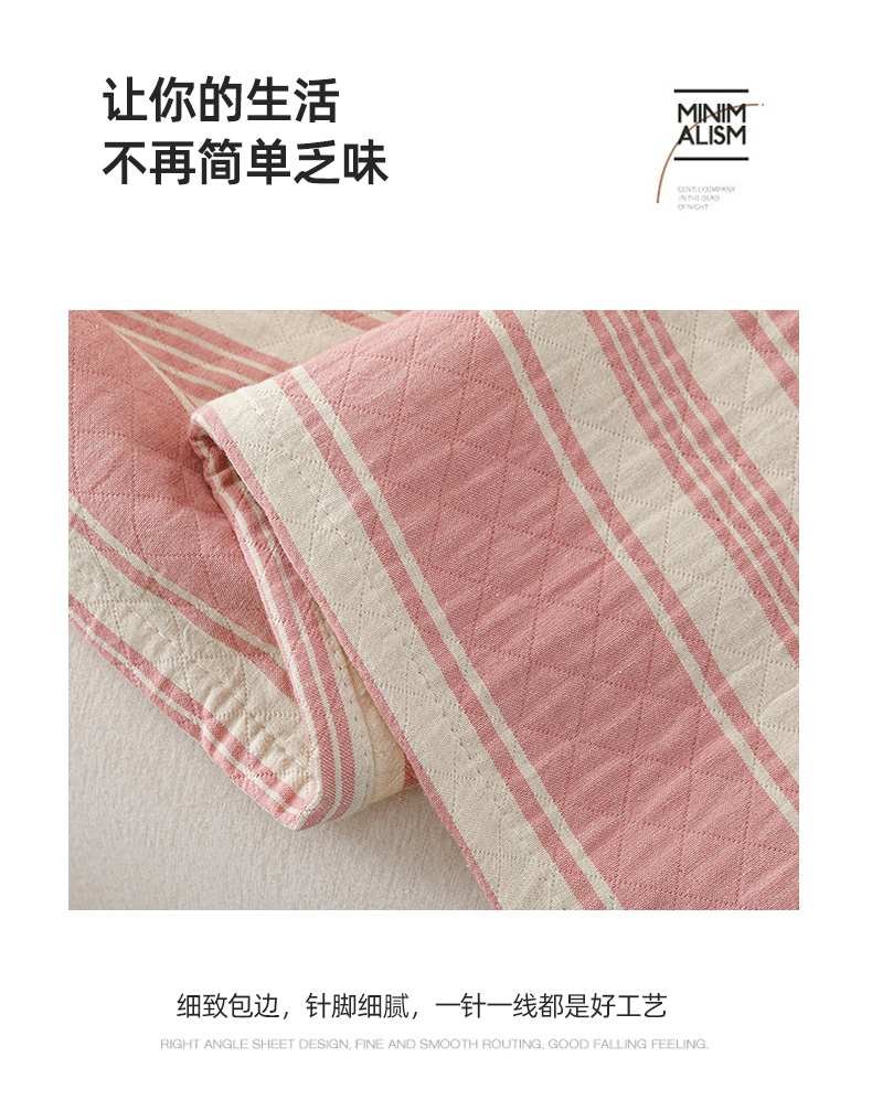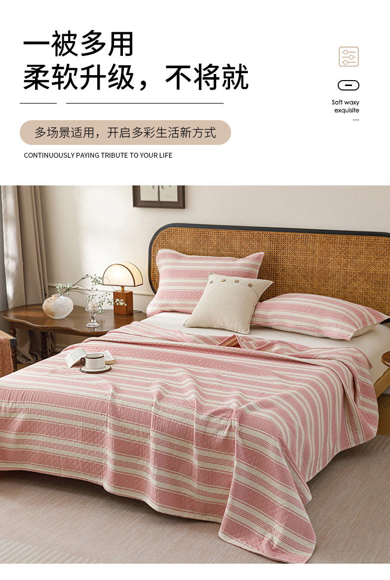 悦然毛巾被 2026新款条纹全棉纯棉色织三层纱毛巾被休闲盖毯毯子 闲夏粉