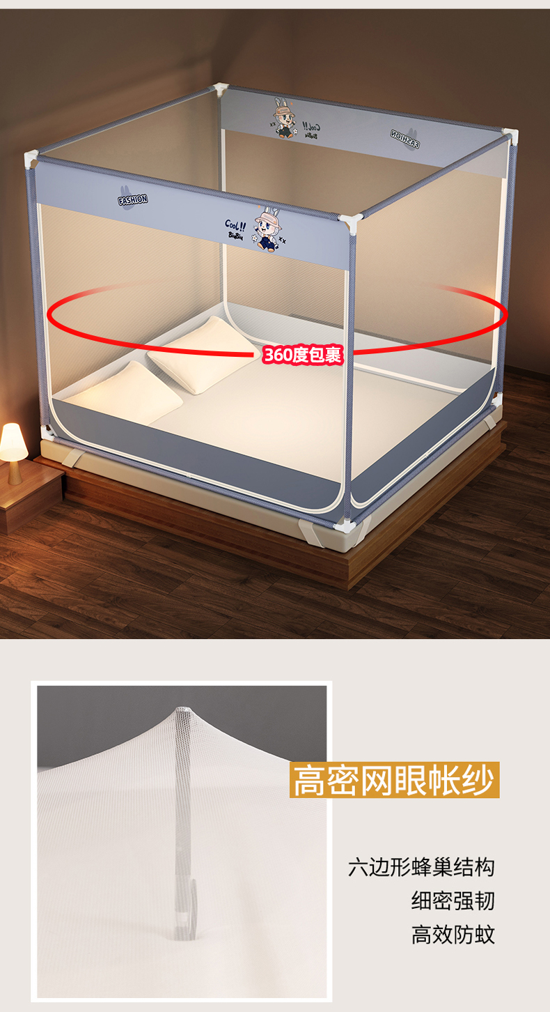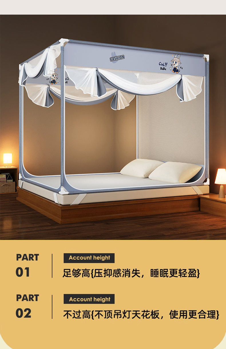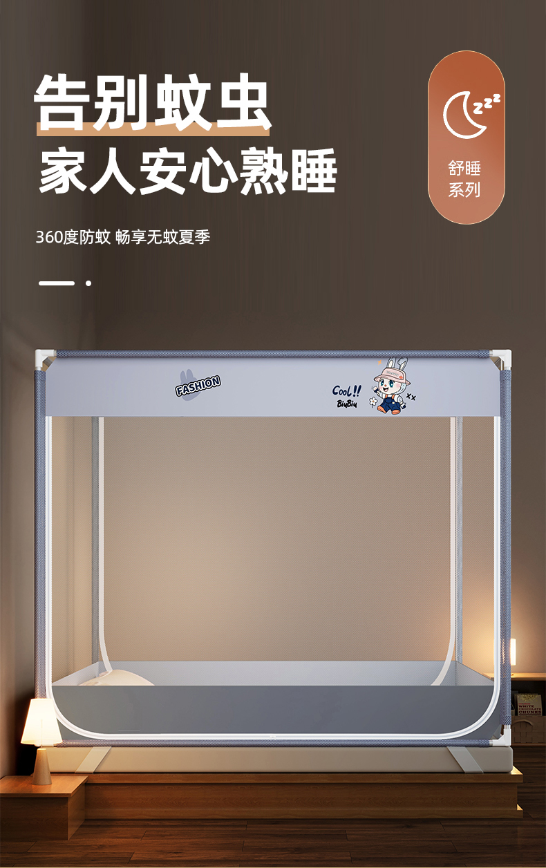 (总)青竹苑 2026新款双门全底外穿坐床式蚊帐儿童防摔防蚊拉链方帐,宾利蓝,大熊猫,简约咖,可爱粉,黎明蓝,三只熊,绅士灰,太空漫步,兔子粉,兔子蓝